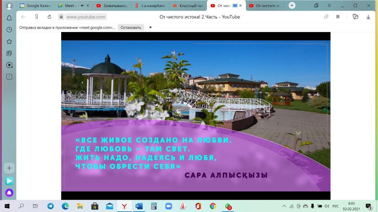 Классные руководители 1-11 классов провели классный час на тему «Самопознание С.А. Назарбаевой" об авторе программы нравственно- духовного образования. Учащиеся школы узнали о деятельности Первой леди страны. Какую роль внесла С.А.Назарбаева в развитие подростающего поколения.