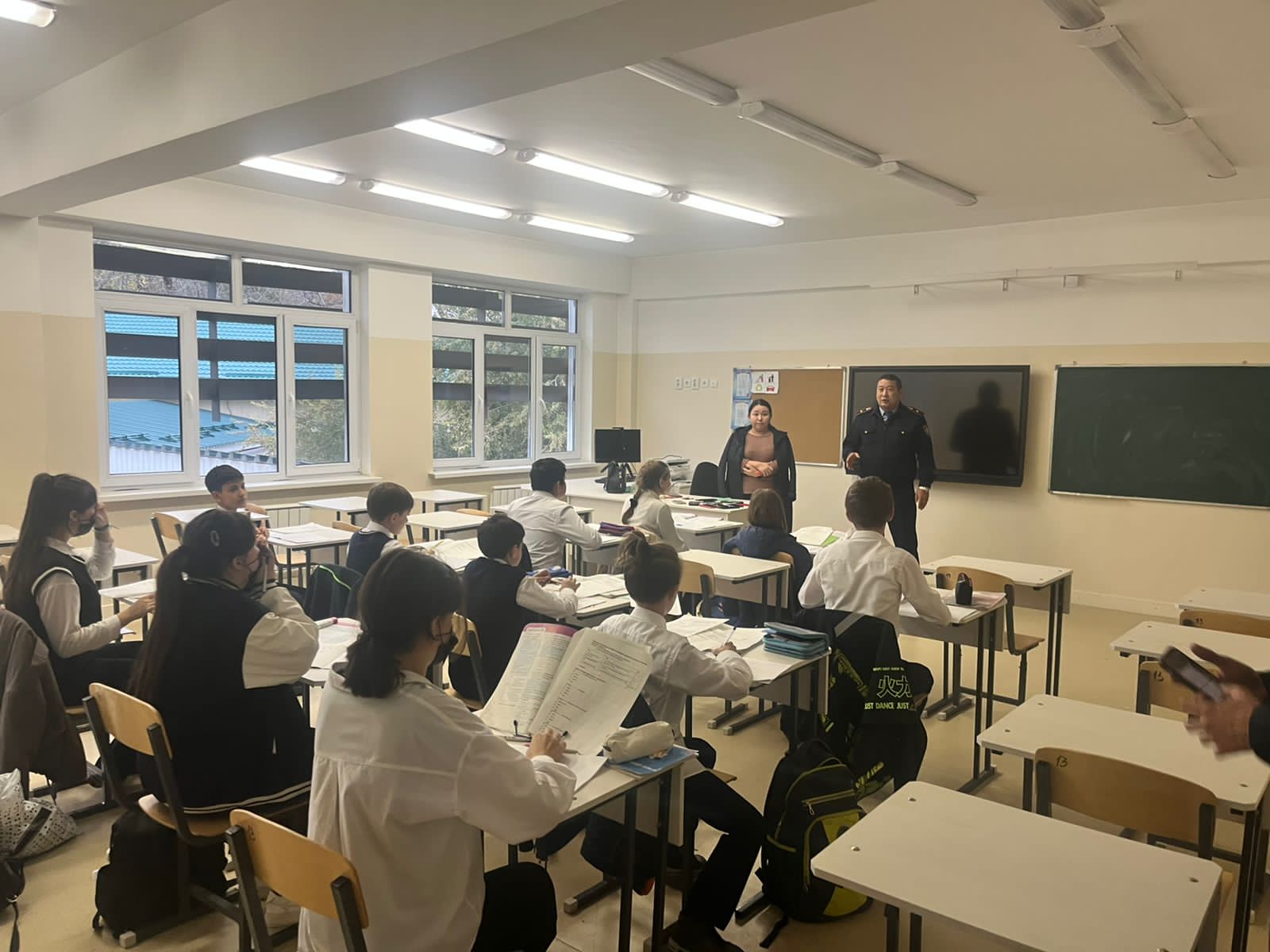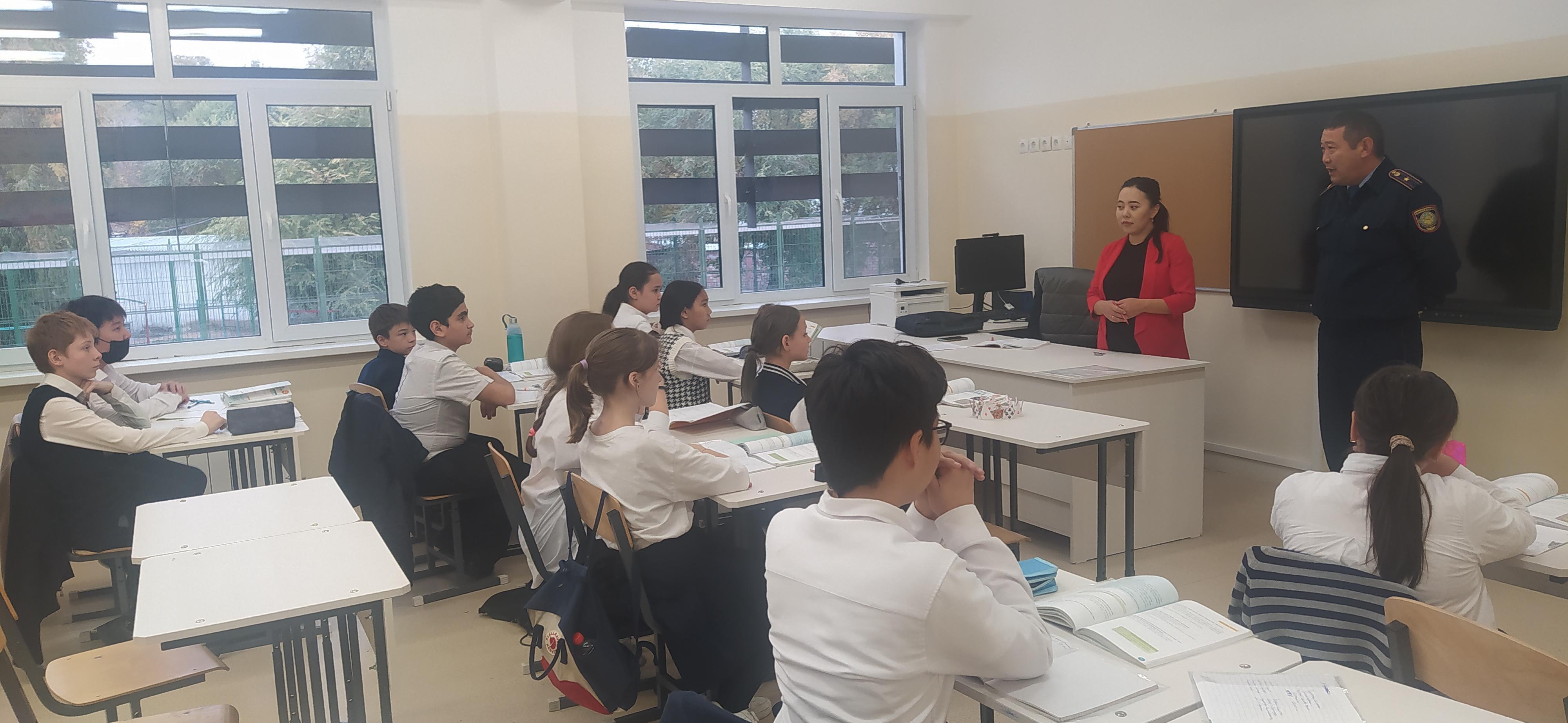 19 қазанда № 61 ЖББМ КММ-де Алматы-1 станциясынан ЛУП ҰҚЖ командирі, полиция майоры Б.К. Әуелбеков 5-7 сынып оқушыларымен теміржол жолдарында қауіпсіз болу; Теміржол жолдары арқылы қауіпсіз өту; байланыс желісінің жоғары кернеулеріне ұшырау қаупі туралы түсіндіру әңгімелерін өткізді. 135 оқушы қатысты. Түсіндірме әңгіме "Темір жол – қауіптілігі жоғары аймақ. Пойыздан сақ болыңыз". 19 октября 2022 года в КГУ ОШ № 61 командиром ВПП ЛУП со станции Алматы-1, майором полиции Ауельбековым Б.К., были проведены разъяснительные беседы с учащимися 5-7х классов о правилах безопасного нахождения на железнодорожных путях; безопасного перехода через железнодорожные пути; об опасности поражения высоким напряжениям контактной сети. Приняли участие – 135 учащихся.