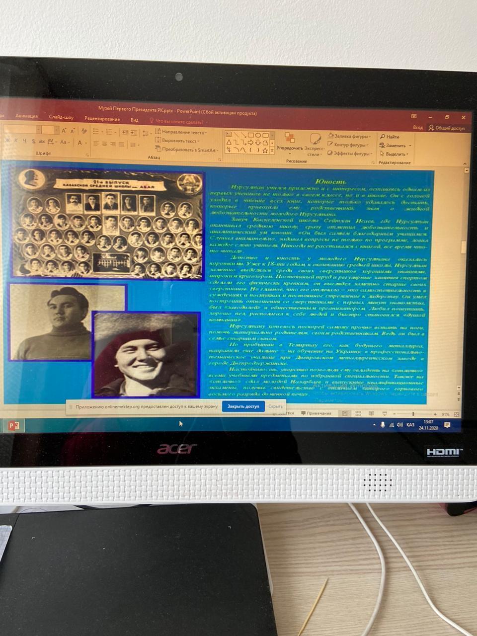 В преддверии дня Первого Президента классные руководители провели классные часы. Классные руководители 1-4 классы провели на тему "День Первого Президента", 5-7 классы "Национальные культурные объекты. Музей Первого Президента, 8-11 классы "Видеосюжет "Президент - мудрый руководитель".
