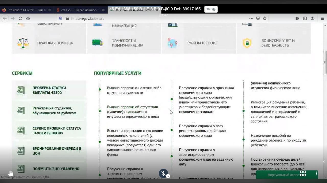 Мемлекеттік қызметті алу/Получение государственной услуги