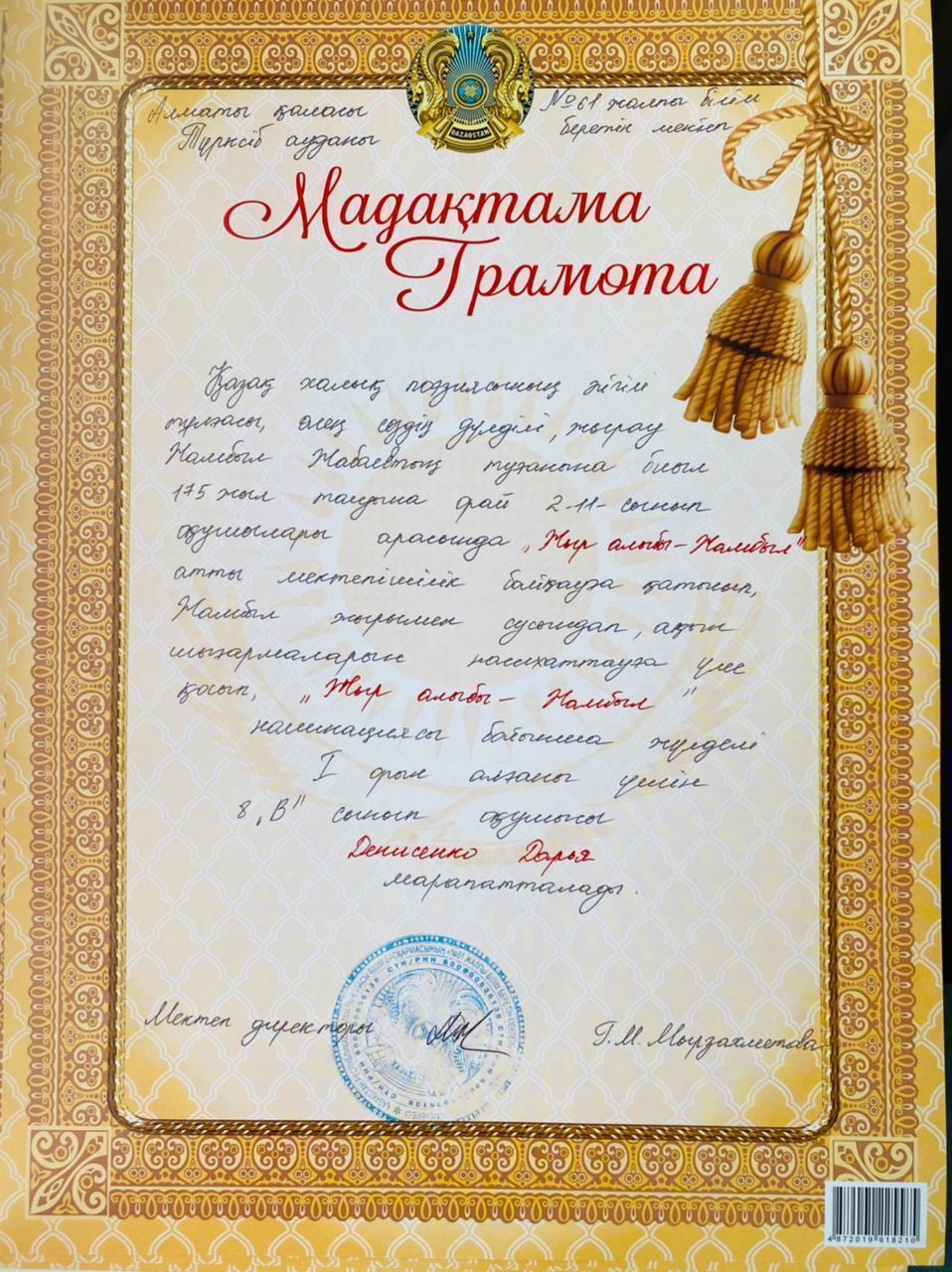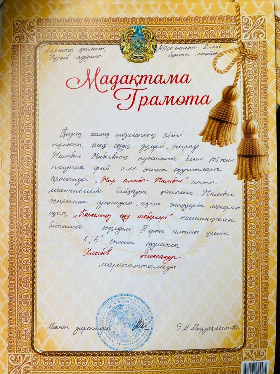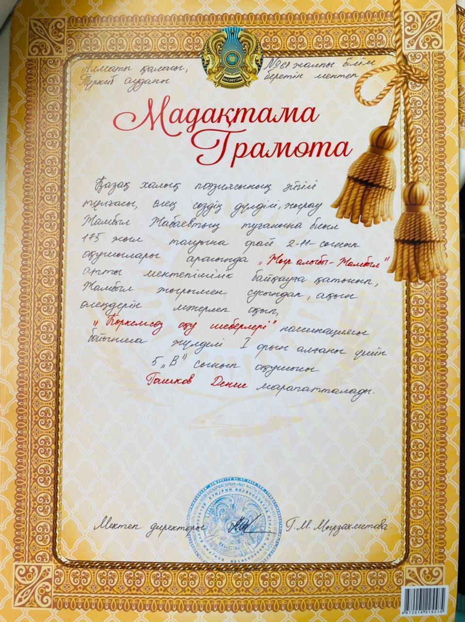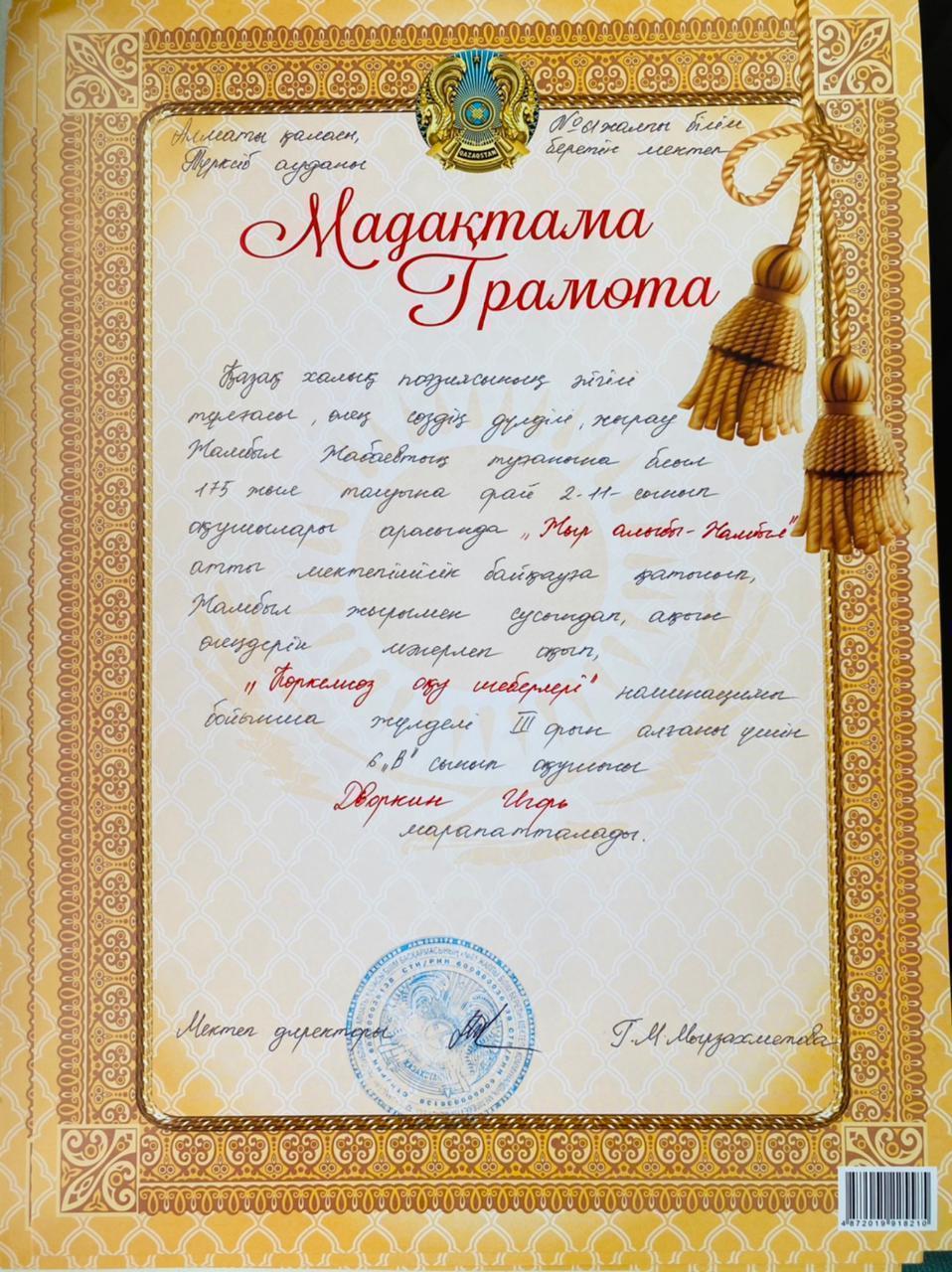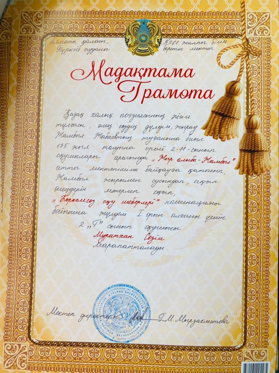 Жамбыл Жабаевтың 175 жылдығы Қазақ тілі мұғалімі Турусбекова Айман Серікқызы, Сәулетжан Айым