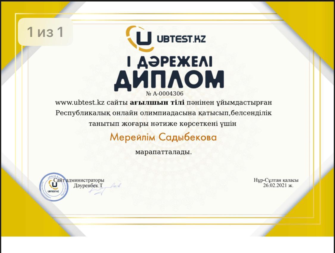 Педагогический состав школы постоянно занимается самообразованием. Учитель английского языка Садыбекова Мерейлім Токкожакызы участница республиканской онлайн олимпиады. Мерейлім Токкожакызы награждена Дипломом I степени за высокие показатели в знании английского языка. Активное участие на сайте www.ubtest.kz