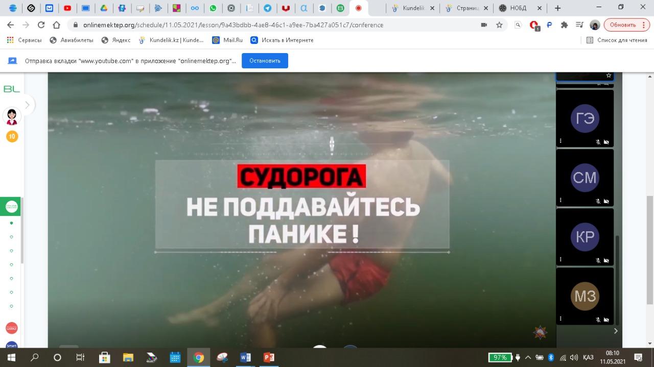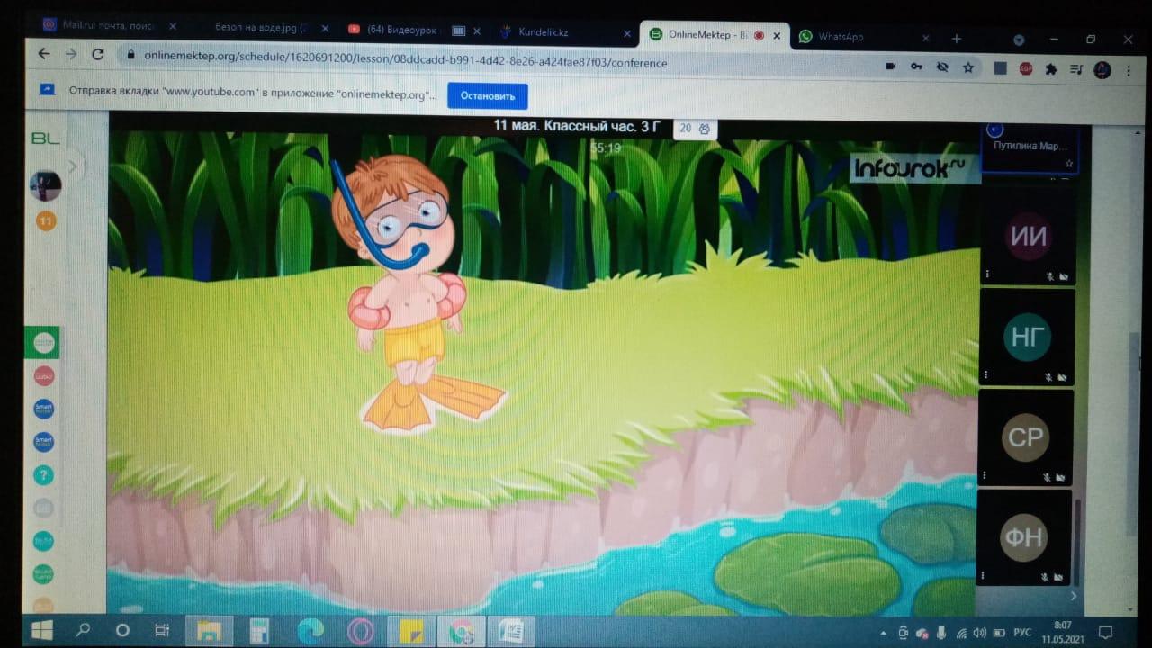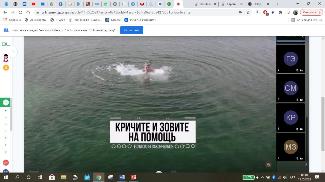 11 мамырда аудандық ТЖ департаментінің нұсқауы бойынша 1-11 сыныптан бастап "судағы қауіпсіздік" тақырыбында бірыңғай сынып сағаты өткізілді.