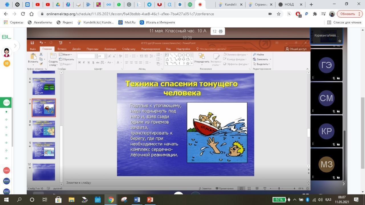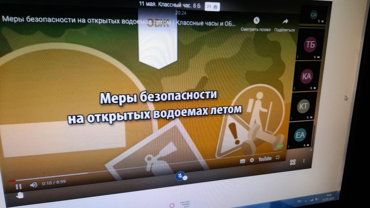 11 мая по указанию районного департамента ЧС провели единый классный час на тему: «Безопасность на воде» с 1-11 класс.