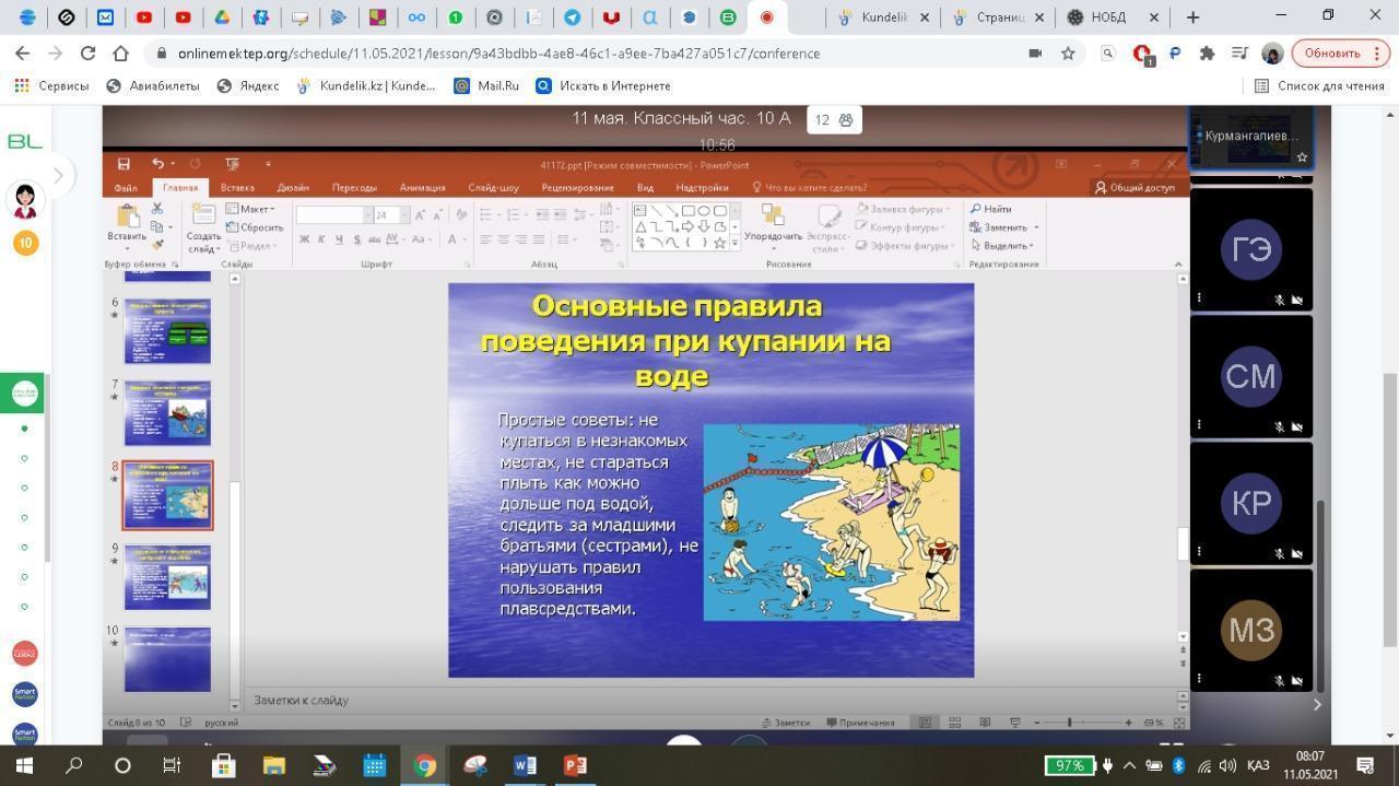 При проведении классного часа особое внимание уделили правилам техники безопасности в реках озерах и водохранилищах.