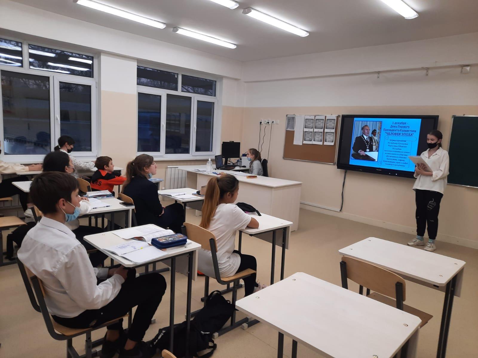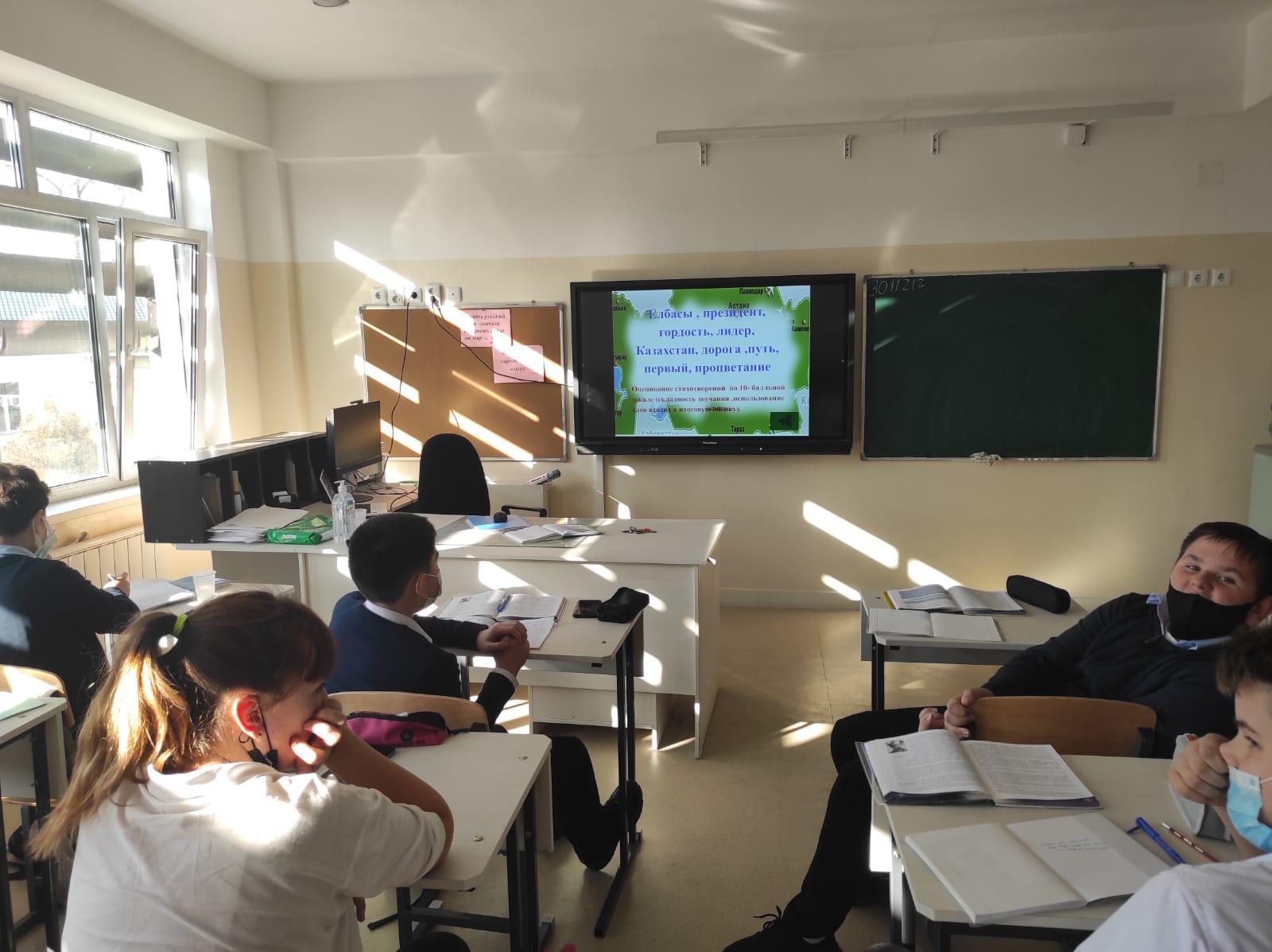 Тарих пәнінің мұғалімдері Т. М. Дюсенов, А.С. Сарапулова 6-7 сынып оқушылары арасында "Біздің Тұңғыш Президентіміз" викторинасын өткізді. Викторина сұрақтары Н.Ә. Назарбаевтың өмірімен байланысты.Учителя истории Дюсенов Т.М., Срапулова А.С., провели викторину "Наш Первый Президент" среди учащихся 6 - 7 классов. Вопросы викторины связаны с жизнедеятельностью Н.А.Назарбаева.