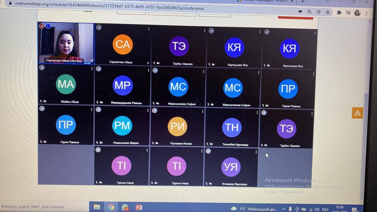 18 январь 2022 0 1 2 3 4 5 Қашықтықтан оқытудың екінші күні. Второй день дистанционного обучения Второй день в формате дистанционного обучения. Қашықтықтан оқытудың екінші күні Осы беттің QR-коды:QR-код этой страницы: