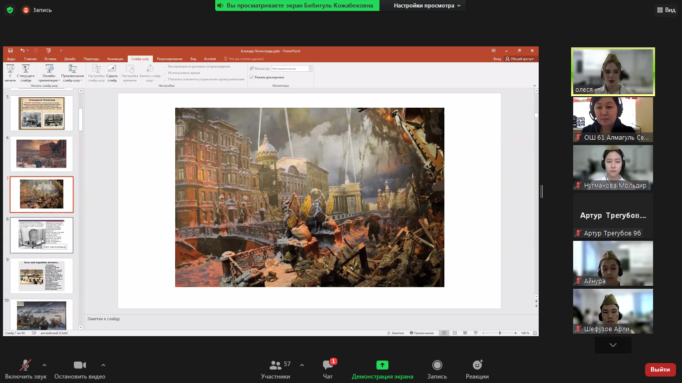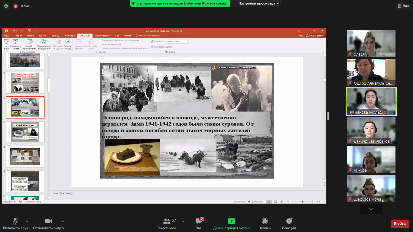 12 ақпанда мектеп үкіметінің мүшелері Ленинград блокадасының алынуының 78 жылдығына арналған онлайн конференцияға қатысты. Оқушылар қиын-қыстау кезеңнің тарихи оқиғаларымен танысты. Конференцияны ұйымдастырушылар 44 мектеп әкімшілігі мен оқушылары.
