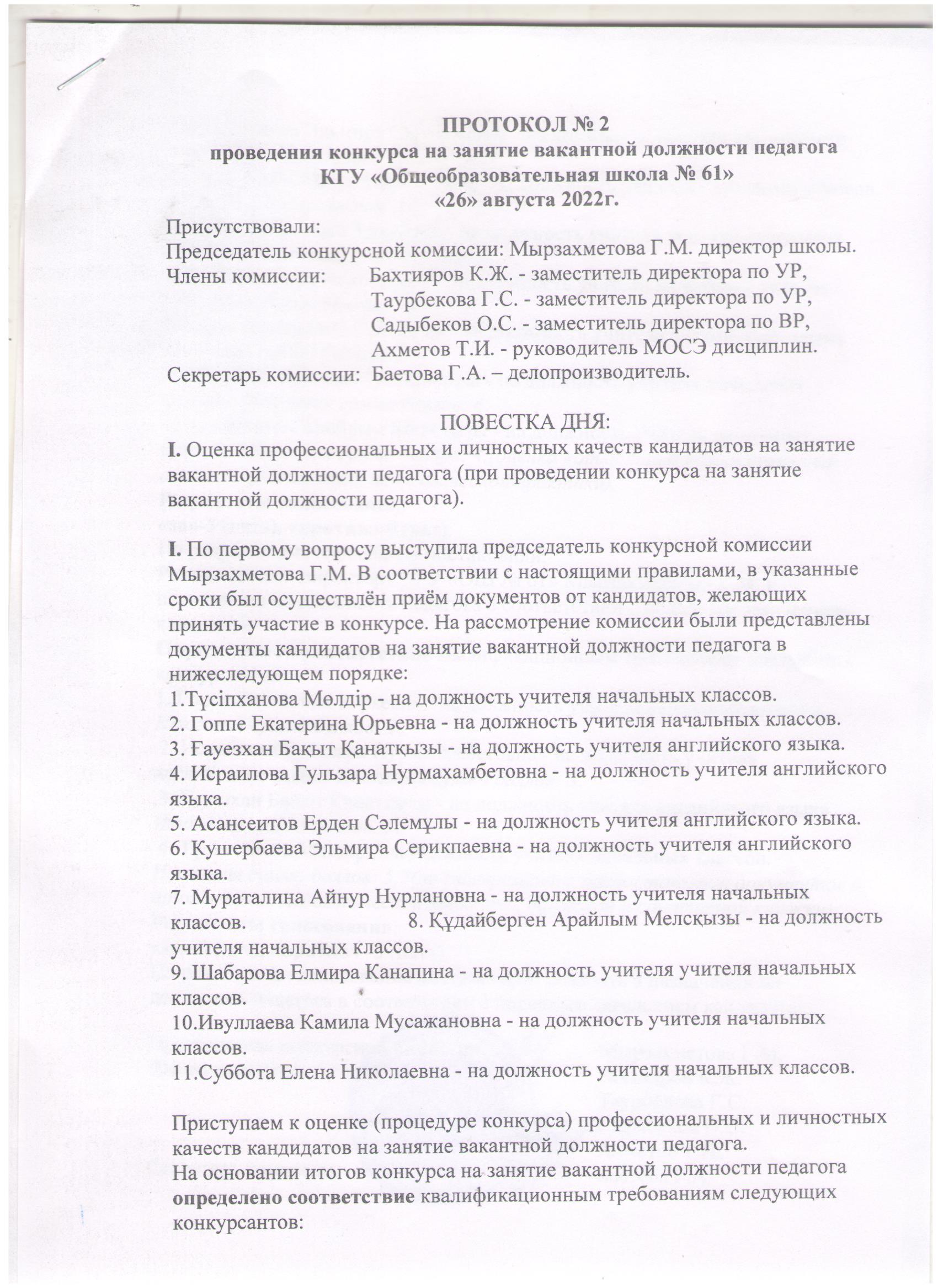 29 август 2022 0 1 2 3 4 5 Педагогтың бос лауазымына орналасу бойынша конкурс өткізу жөніндегі № 1 хаттама/Протокол № 1 по проведению конкурса на занятие вакантной должности педагога Протокол № 1 по проведению конкурса на занятие вакантной должности педагога Осы беттің QR-коды:QR-код этой страницы: