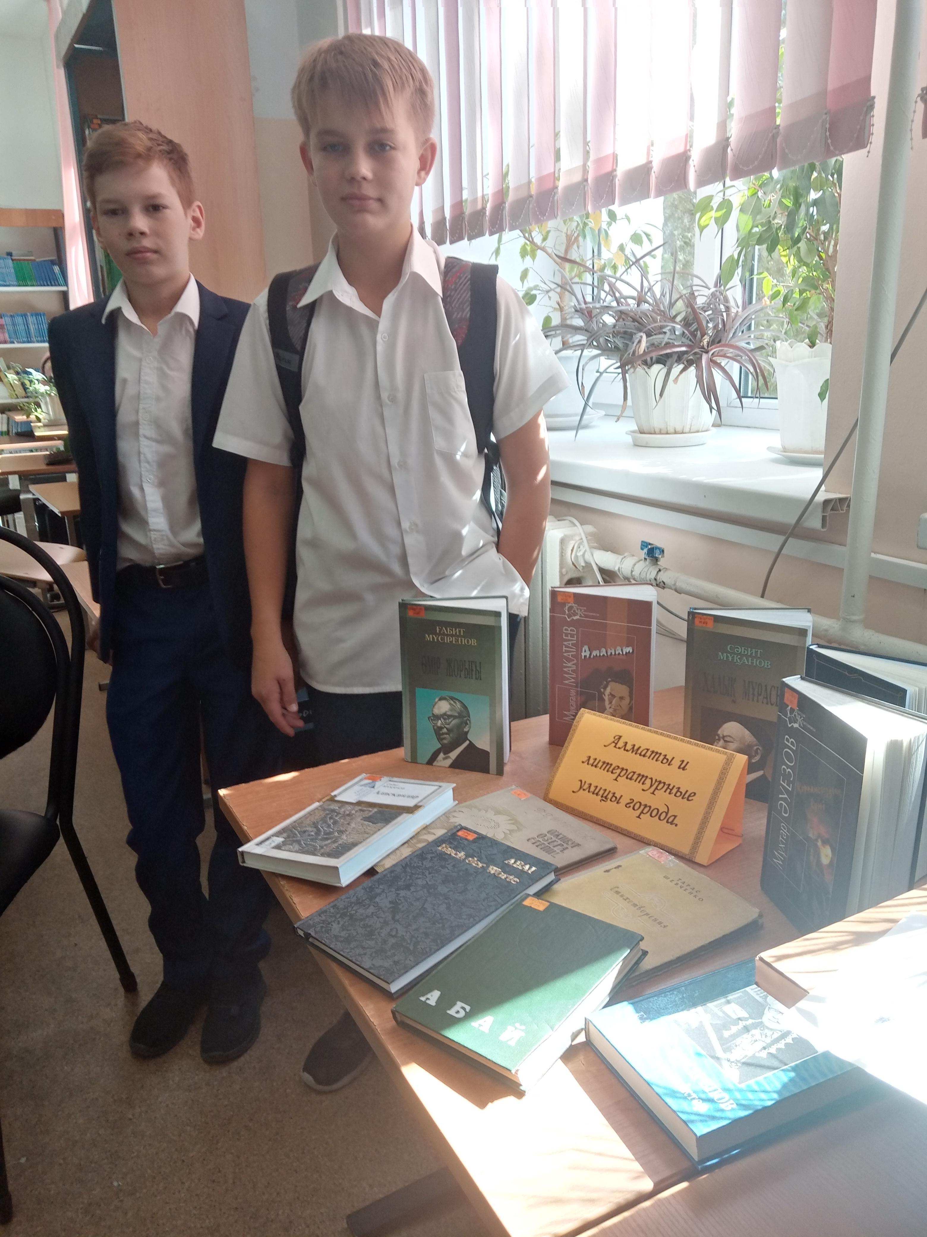 Мектеп кітапханасында қала күніне арналған "Алматы және қаланың әдеби көшелері" виртуалды экскурсиясы өтті. Балалар іс жүзінде ақындар мен жазушылар атындағы көшелерге барып, оларға алғыс білдірген қала ескерткіштер орнатты. Сондай-ақ осы жазушылар мен ақындардың шығармаларымен танысты.