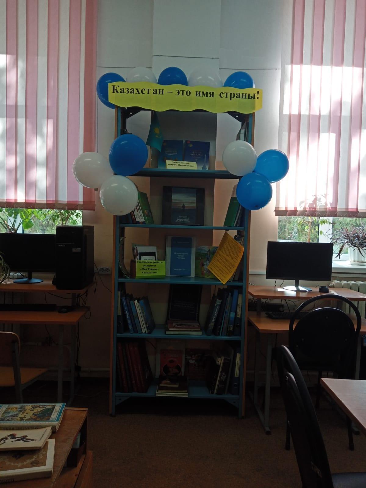 10 қазан мен 25 қазан аралығында мектеп кітапханасында 2-4 сынып оқушылары арасында республика күніне арналған "Қазақстан – бұл елдің аты"атты кітап көрмесі ұйымдастырылды. Көрмені ұйымдастырушы Дремина Татьяна Витальевна. Көрмеге 125 оқушы қатысты.