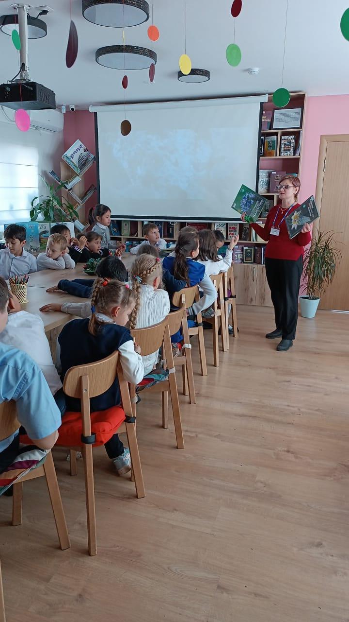 Учащиеся 3 В класса, классный руководитель Джевагирова М.Н., посетили Детскую библиотеку №1 Централизованной библиотечной системы г.Алматы, где они узнали, что украшением Центрально-Азиатских гор и символом Казахстана является Снежный барс, или ирбис. Снежный барс так же является символом города Алматы и изображён на его гербе.