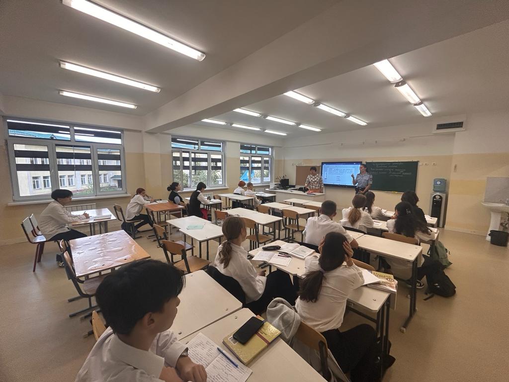 Түрксіб ауданы ПБ БЖБ полиция капитаны Айжан Өміржанқызы Айтбаева "әлеуметтік желілердегі қауіпсіздік", "кәмелетке толмағандар арасындағы құқық бұзушылықтардың алдын алу", "жасөспірімдер арасындағы жаман әдеттер"тақырыбында профилактикалық әңгіме өткізді.Капитан полиции ОЮП УП Турксибского района Айтбаева Айжан Омиржанкызы, провела профилактическую беседу на тему «Безопасность в социальных сетях», «Профилактика правонарушений среди несовершеннолетних», «Вредные привычки среди подростков».