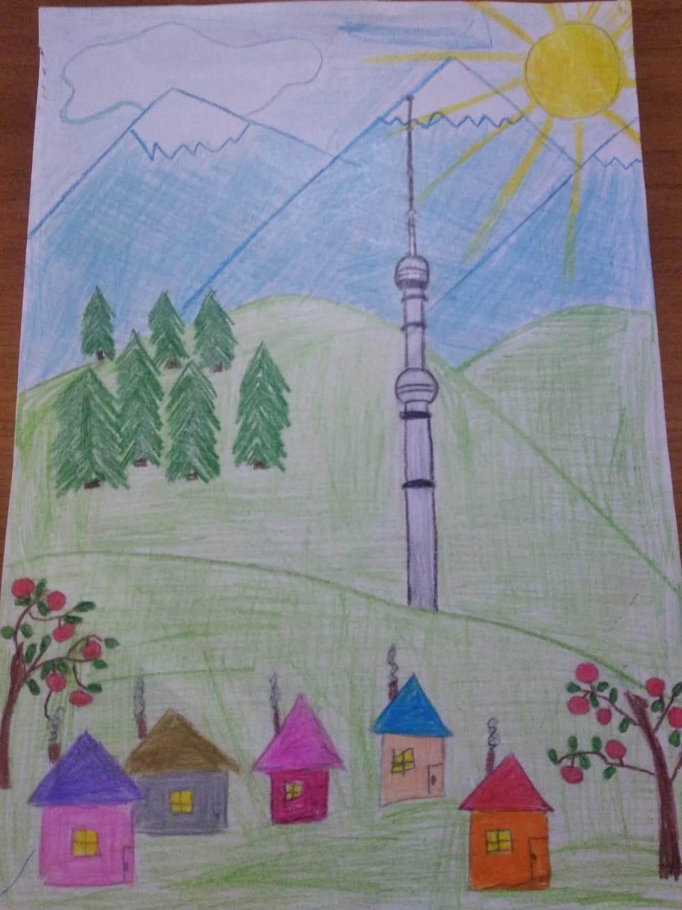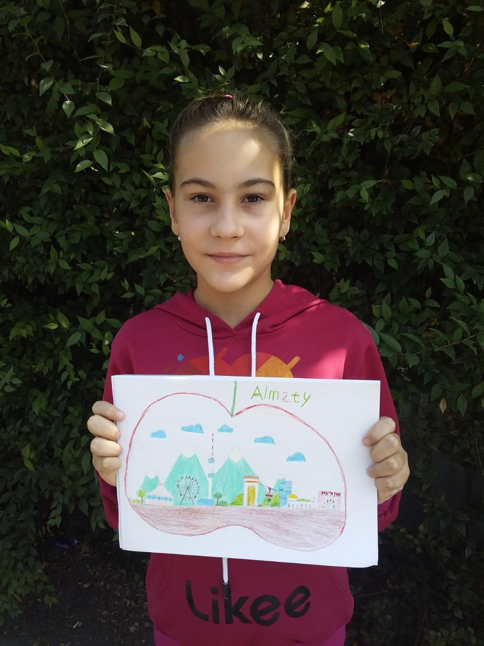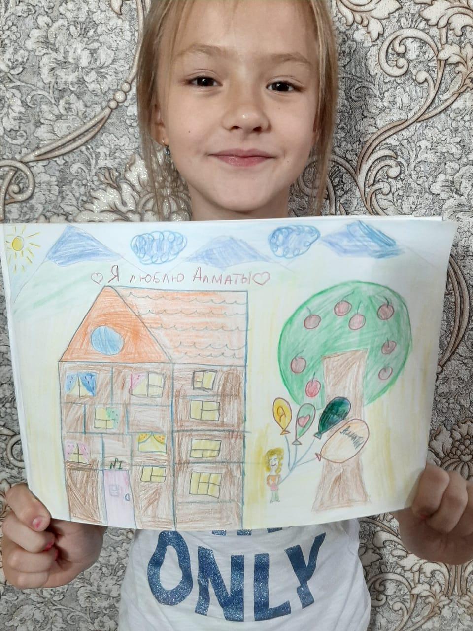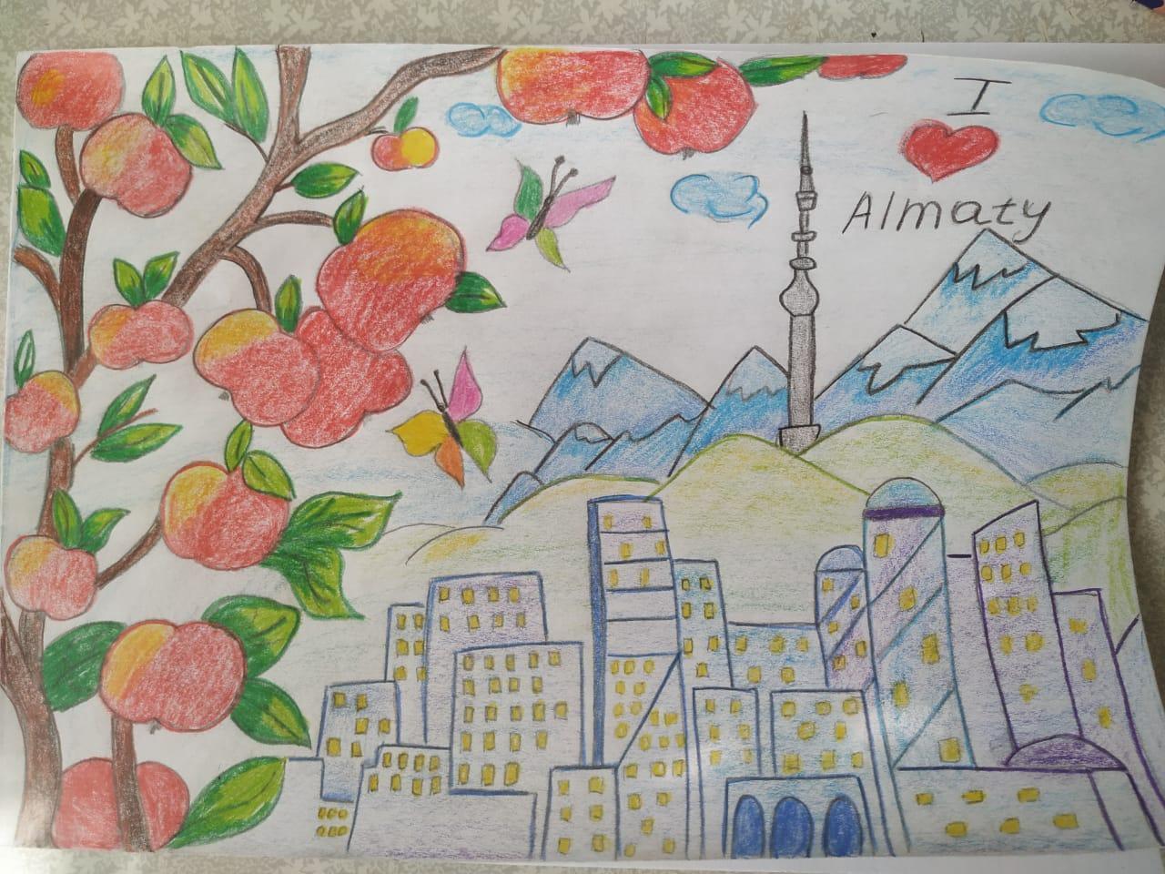 По школе была организована выставка рисунков учащихся ко Дню города "Гордость моя - Алматы!". Цель: формирование казахстанского патриотизма, укрепление единства нации: