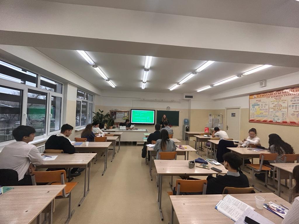 Санкт-Петербург Гуманитарлық кәсіподақтар университетінің филиалы психология факультетінің 1 курс студенті Анна Андреевна Голомазова 11А сынып оқушыларына кәсіби бағдар өткізді.