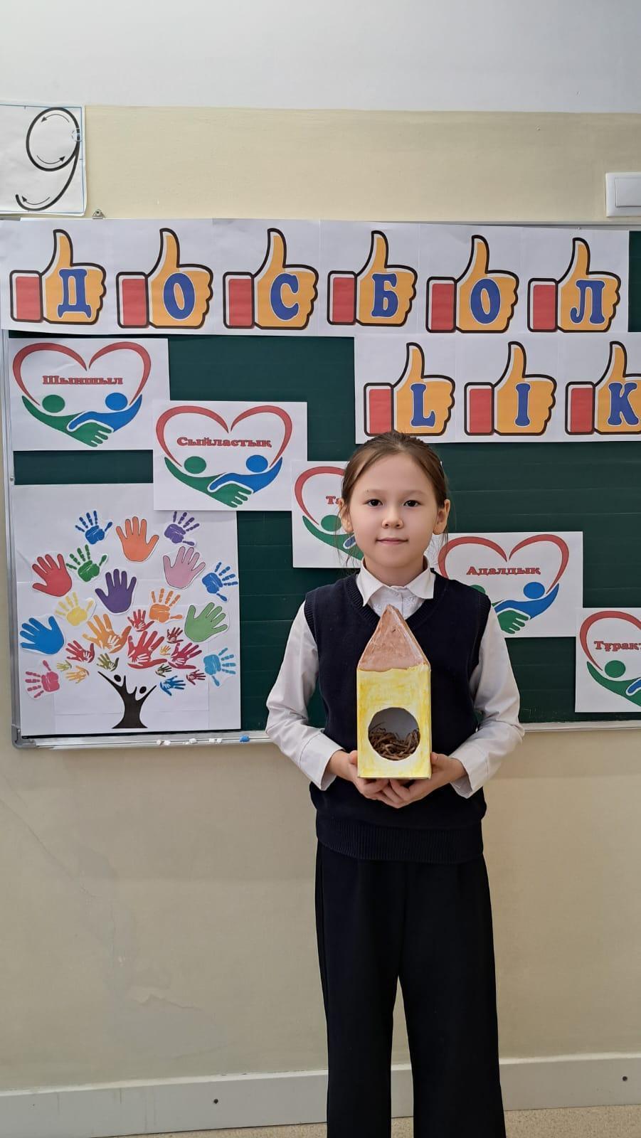 "ДОСБОЛLIKE - 2024 "акциясы аясында: достық қолын ұсыныңыз "Құстарды қыста тамақтандырыңыз". Акцияның мақсаты-балалар мен ересектердің назарын қыстайтын құстарға аудару, олар үшін қыстау кезеңін жеңілдету, сондай-ақ оқушылардың экологиялық белсенділік деңгейін арттыру.