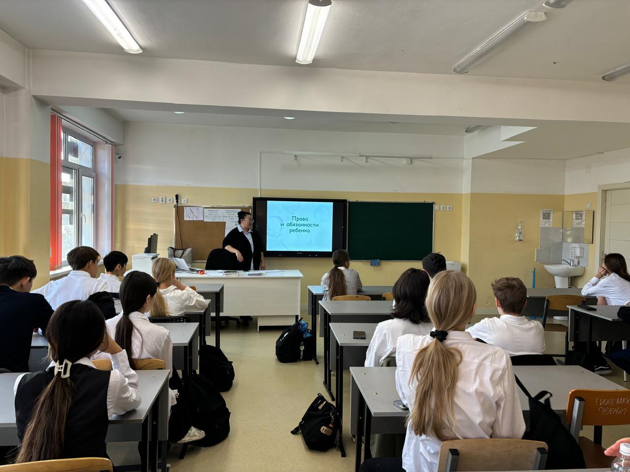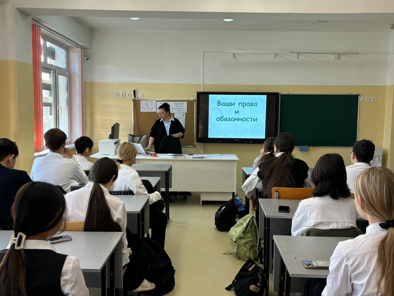 2-11 сынып оқушылары арасында "Мен және менің құқықтарым" тақырыбында сынып сағаттарын өткізу. Сынып сағатының мақсаттары: балалардың құқықтары мен міндеттері туралы білімдерін жалпылау. Құқықтық дүниетаным мен адамгершілік ұғымдарды дамытуға ықпал ету; пайымдау, салыстыру, қорытынды жасау қабілетін дамыту; өзін-өзі бағалау және басқа адамдарға деген құрмет сезімін тәрбиелеу. Міндеттері: балалардың баланың негізгі құқықтары мен міндеттері туралы білімдерін бекіту.