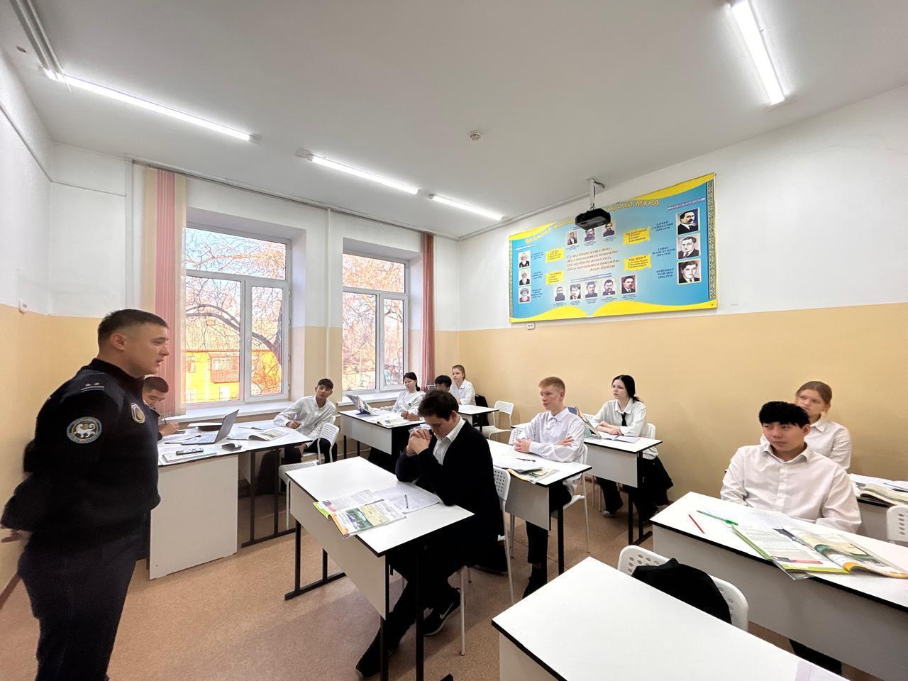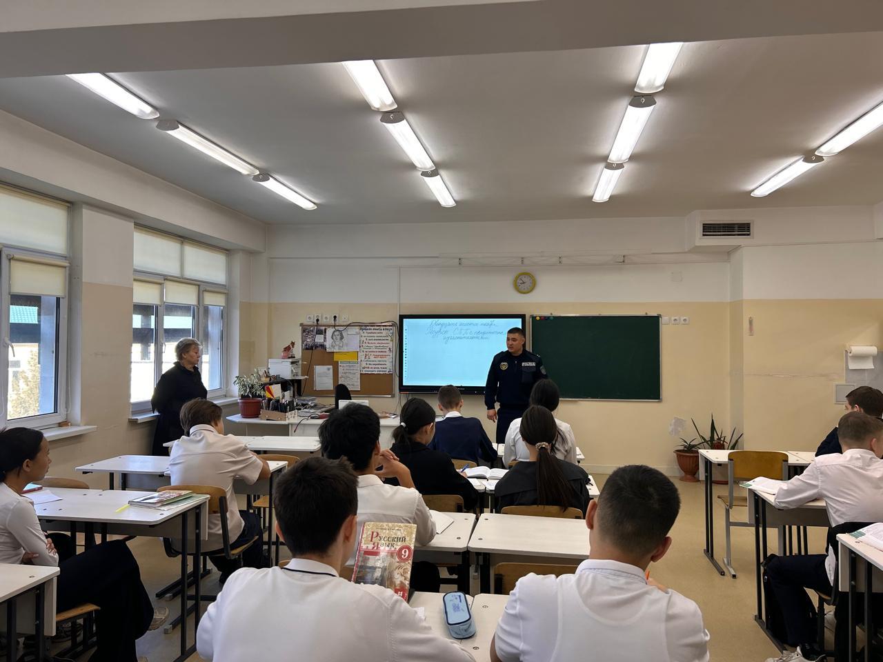 Лейтенант полиции УИП ОЮП Турксибского района Рысалдиев Руслан Алексеевич провел профилактическую беседу на тему «С какого возраста наступает уголовная и административная ответственность» среди учащихся 9 классов. Приняли участие 115 учащихся.
