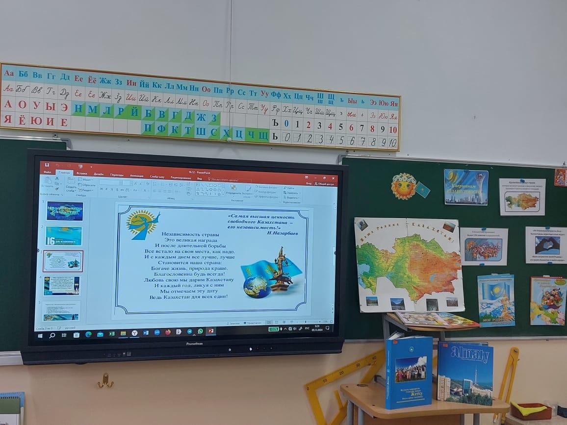 Классный час на тему: "День Независимости Республики Казахстан". Цель: донести до учащихся ценность «любовь к Родине», прививать чувство гордости к своей стране, воспитывать патриотизм и гражданственность.