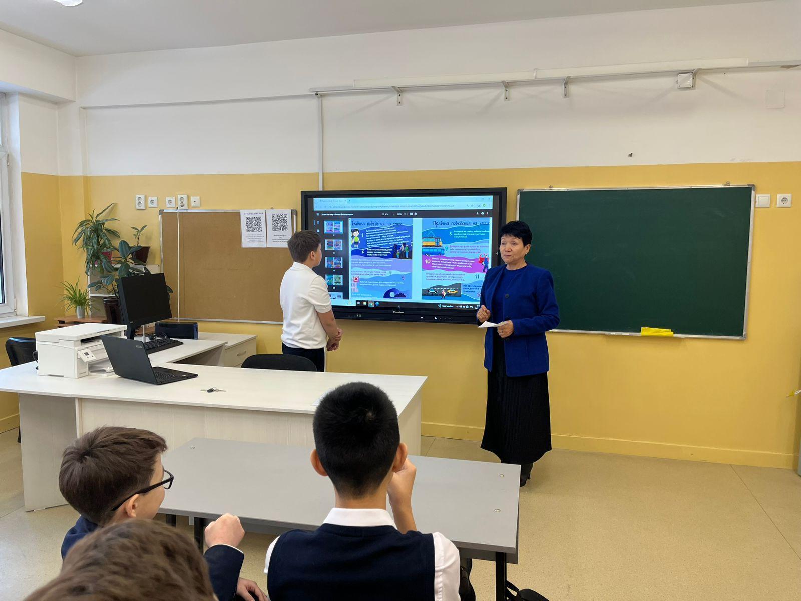 Классные руководители каждый понедельник отводят 10 минут на "Уроки безопасности". «Қауіпсіздік сабағы» сынып сағаты шеңберінде 10 минут ақпарат беру. Темы: 1-4 классы: 1 класс "Улица полна неожиданностей"; 2 класс - 3 класс "Правила поведения детей на улице и дороге"; 4 класс "Знаем ли мы правила дорожного движения". 5-7 классы: 5 классы "Назначение дорожной разметки";