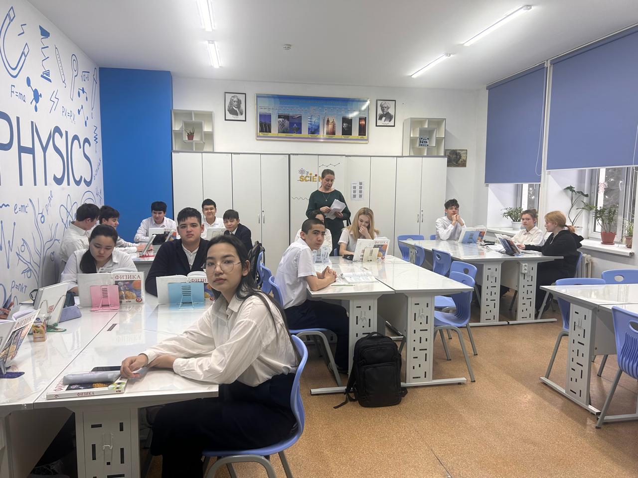 Қазақ халықаралық қатынастар және әлем тілдері Университеті жанындағы Халықаралық Сервис және менеджмент колледжінің өкілі.Абылай хан Кристина Владимировна 9-сынып оқушыларымен кәсіби бағдар өткізді. Колледж бағдарламасымен таныстырды. Ең басты артықшылығы-таңдау бойынша тілдерді тереңдетіп оқыту, ЖОО-ның 2 курсына түсу.