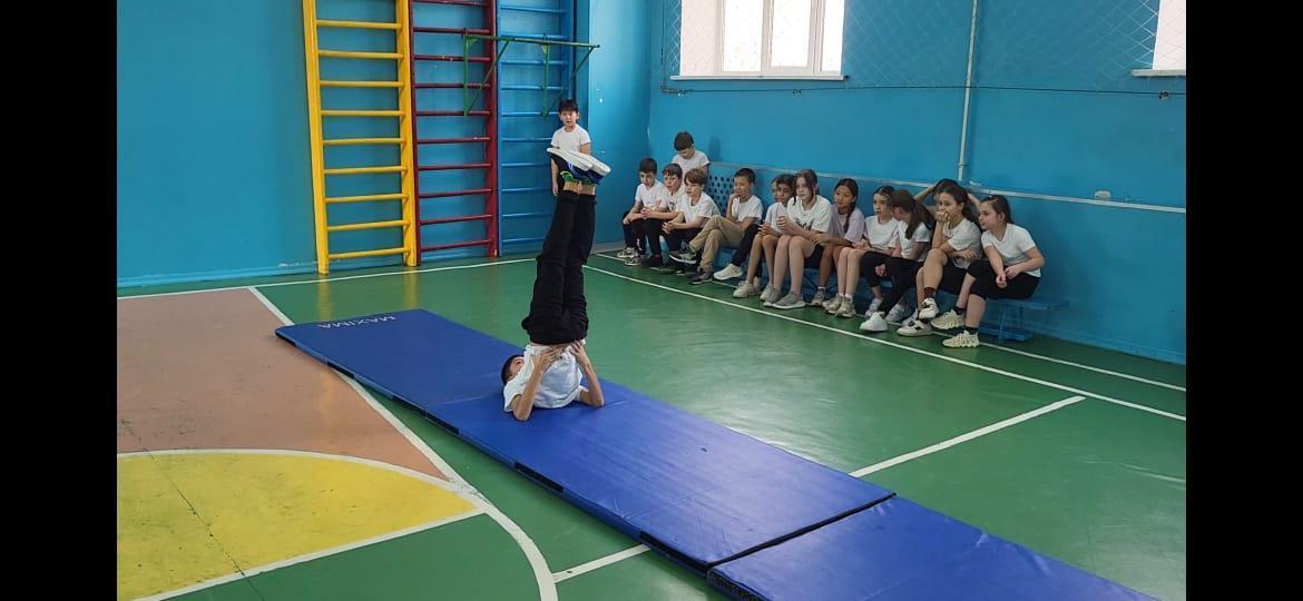 Дене шынықтыру пәнінің мұғалімі Е. В. Масленко "Күш пен рақым" гимнастикадан спорттық мереке өткізді. Мақсаты: балаларды әртүрлі гимнастикалық спорт түрлерімен таныстыру. Спортқа деген сүйіспеншілікті, өз жетістіктерінің нәтижелеріне қызығушылықты тәрбиелеу; спортпен шұғылдануға деген ұмтылысты қалыптастыру. Алдын ала жұмыс: балалармен гимнастика туралы әңгіме-спорттық, көркем. Спортивный праздник по гимнастике "Сила и грация" провела учитель физической культуры Масленко Е.В.. Цель: познакомить детей с различными гимнастическими видами спорта. Воспитывать любовь к спорту, интерес к результатам своих достижений; формировать желания к занятию спортом. Предварительная работа: беседа с детьми о гимнастике-спортивной, художественной.