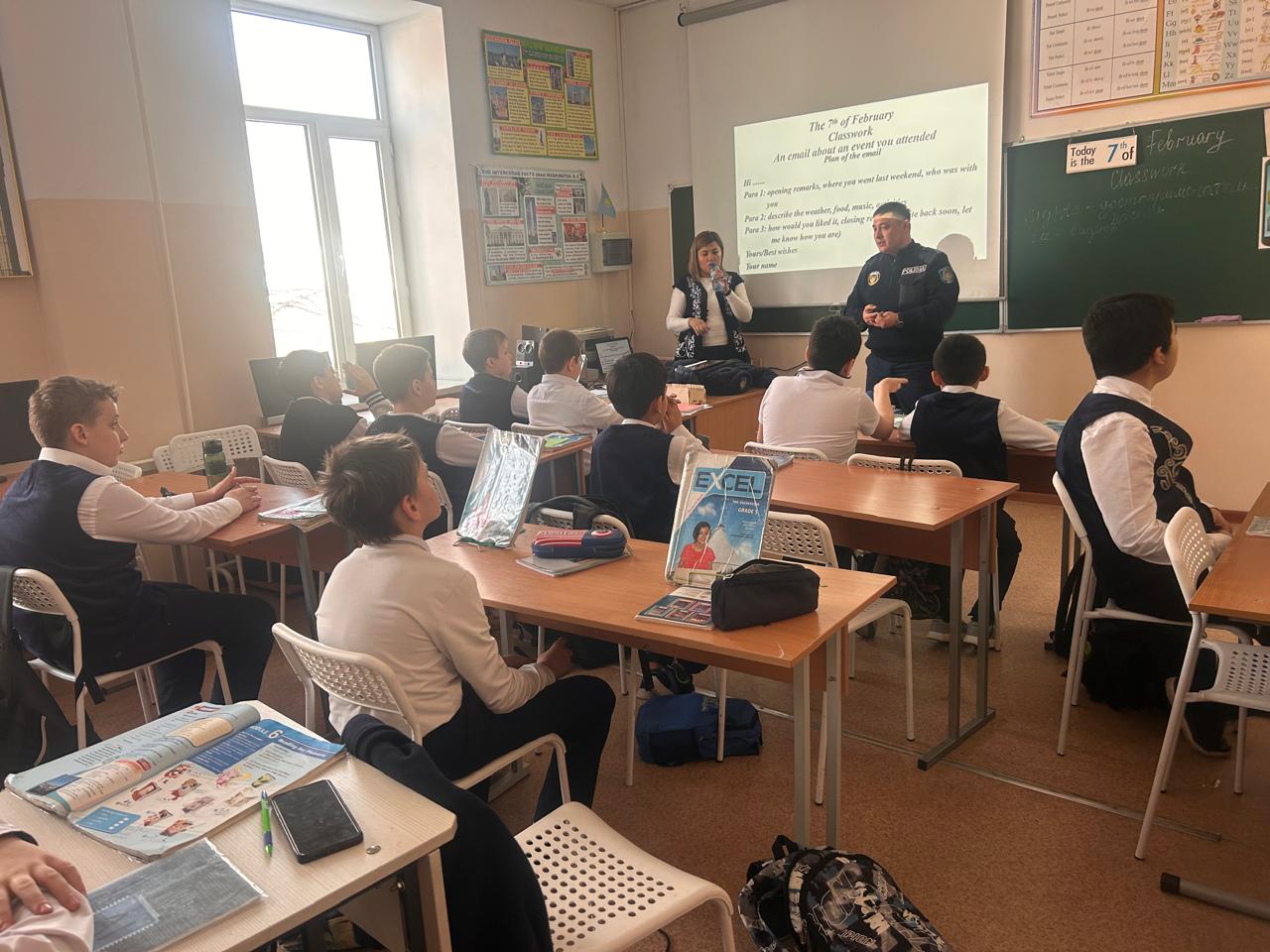 мектеп өмірінің Заңы"тақырыбында әңгіме өткізді. Школьный инспектор Рысалдиев Р.А,, провел беседу среди учащихся 5-х классов на тему "Правила для учащихся - закон школьной жизни".