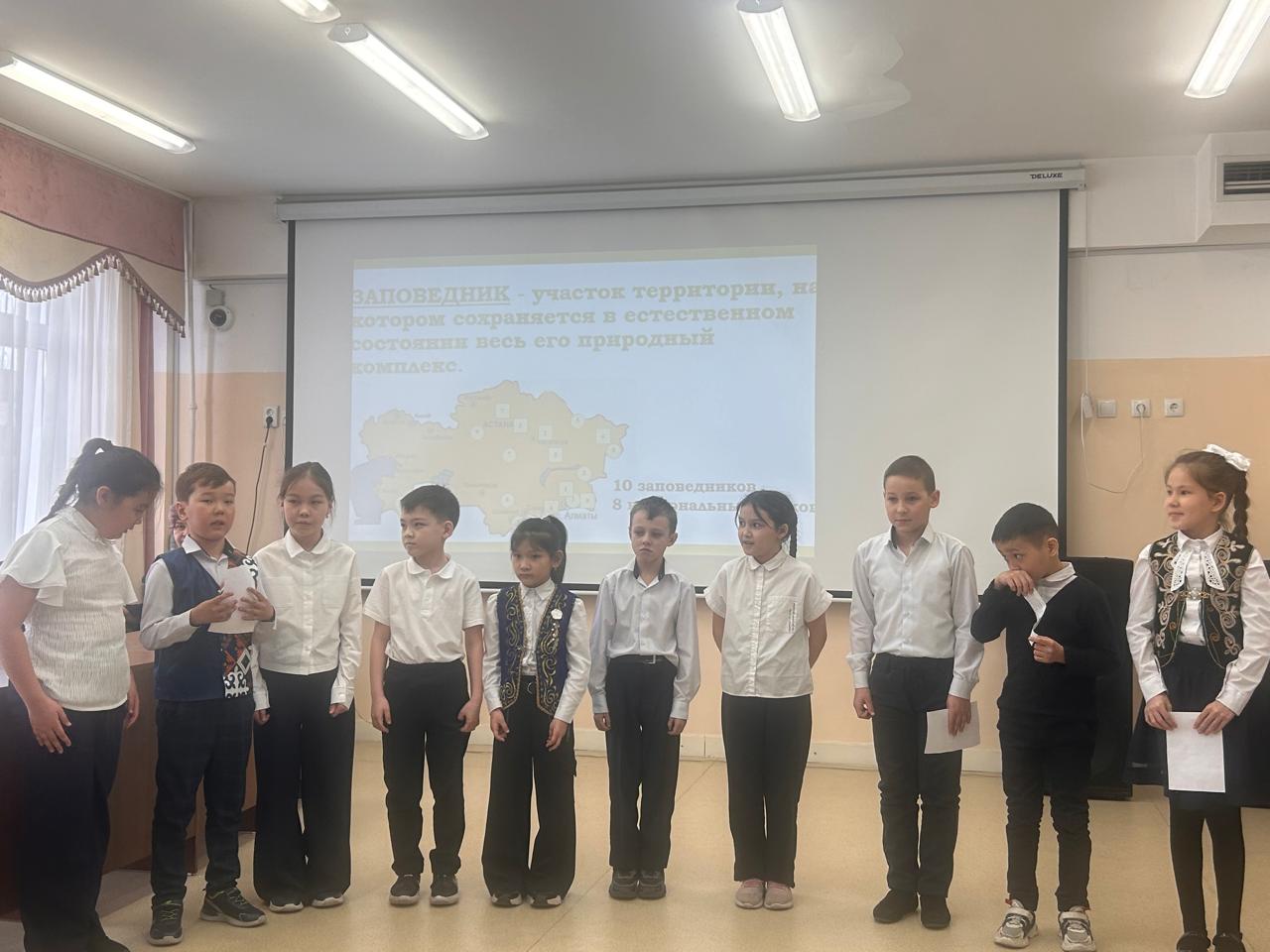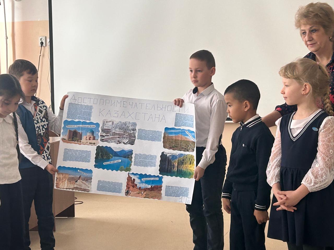 Учащиеся 1-11 классов защищали свои проекты по плакатам по теме "Достопримечательности Казахстана".