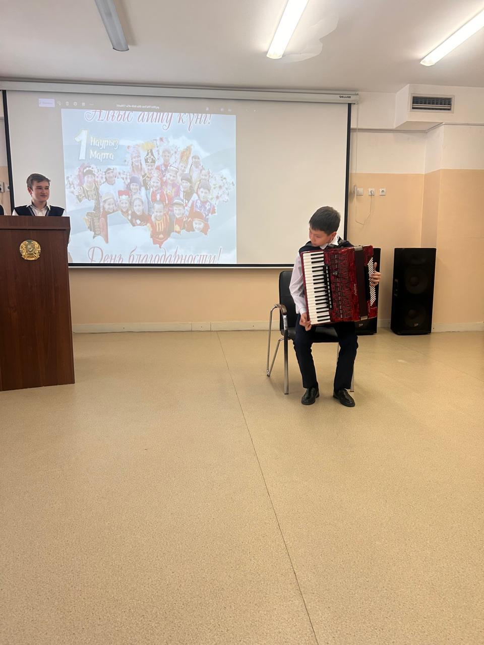 | Сегодня в преддверии Дня благодарности провели конкурс “Startup Bolashak-Менің Арманым”. Цель данного конкурсы выявление молодых талантов на игре музыкальных инструментов, вокале, танце. |