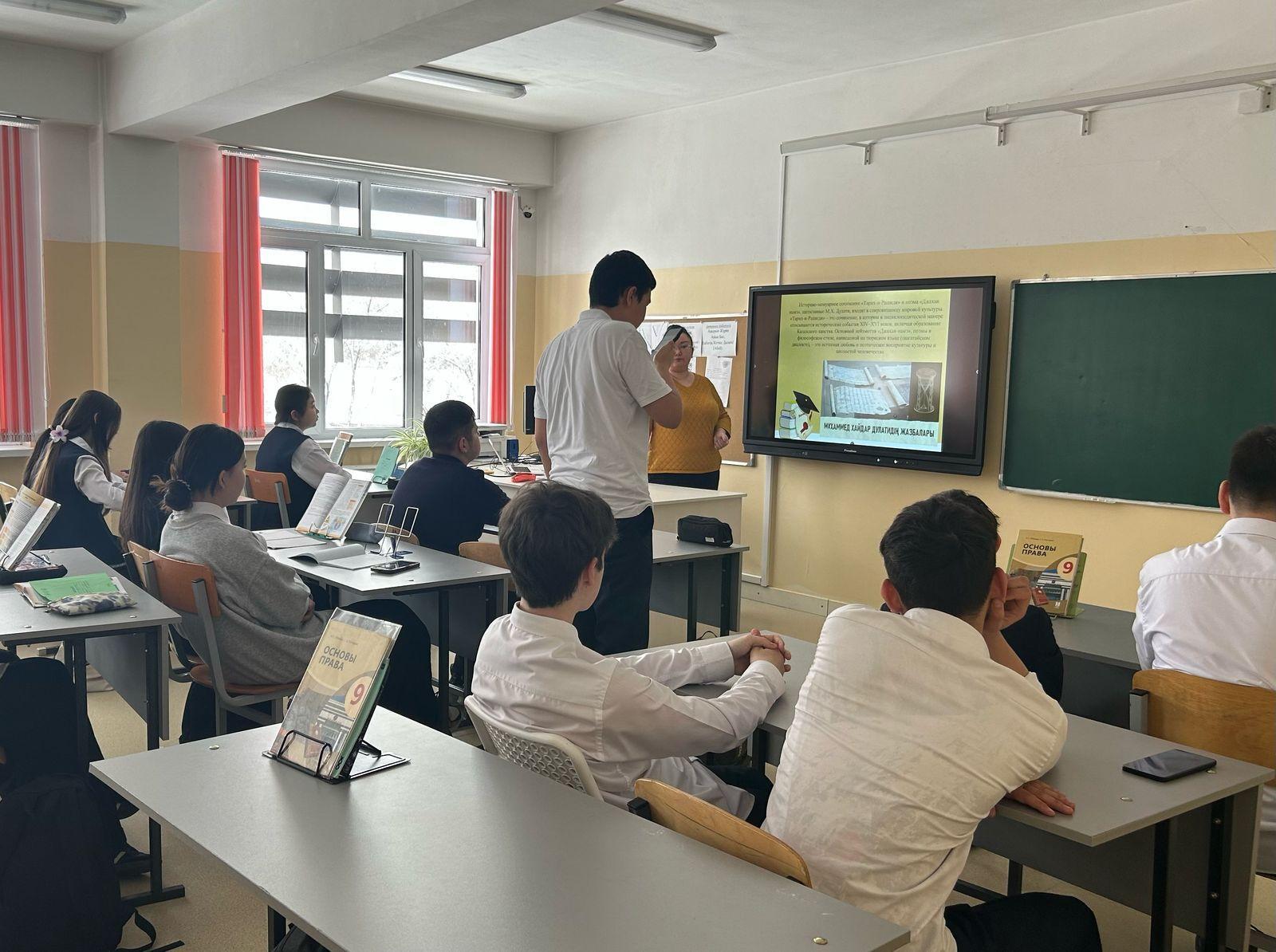 Діниэкстремизмментерроризмнің алдын алу бойынша 9сыныпоқушыларыменәңгімелесудітарихпәнініңмұғаліміА. С. Срапулова жүргізді. Беседу с учащимися 9 классов по профилактике религиозного экстремизма и терроризма провела учитель истории Срапулова А.С.