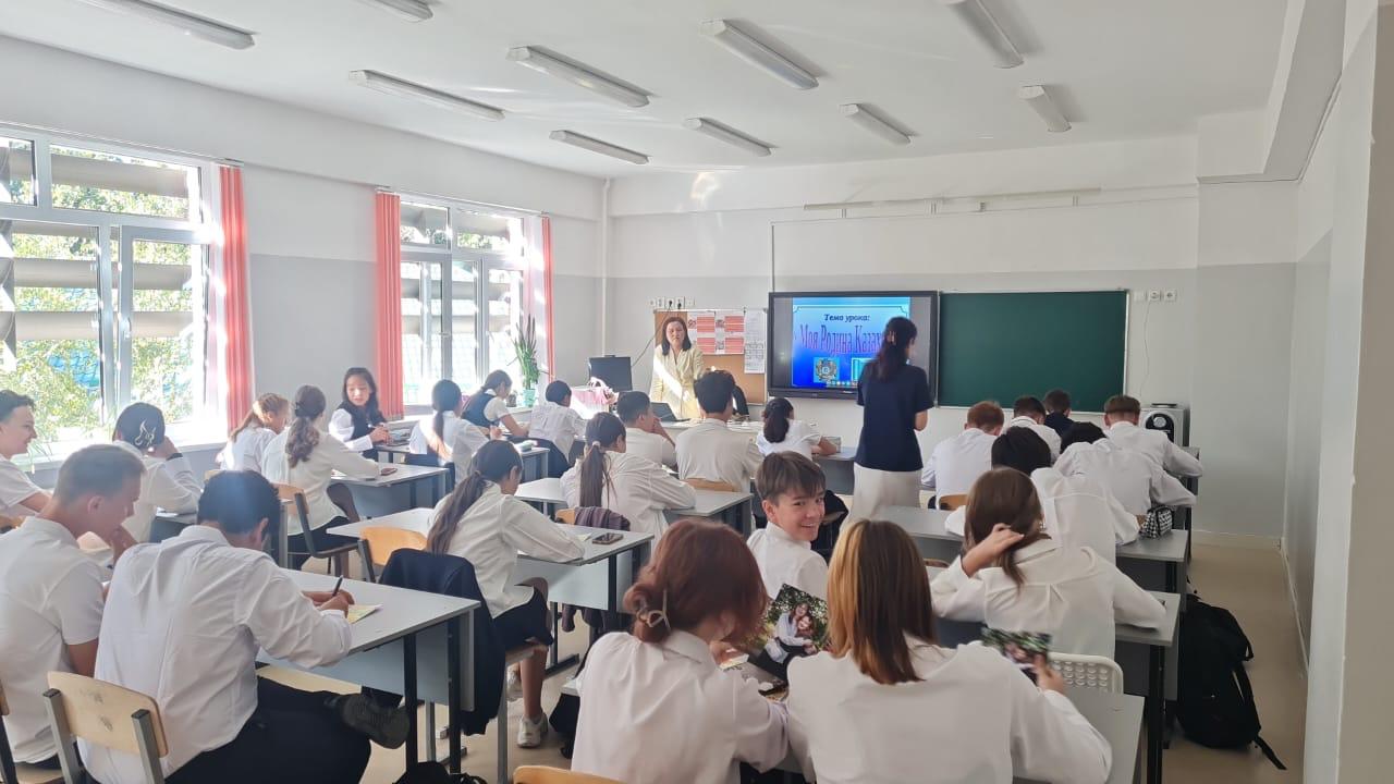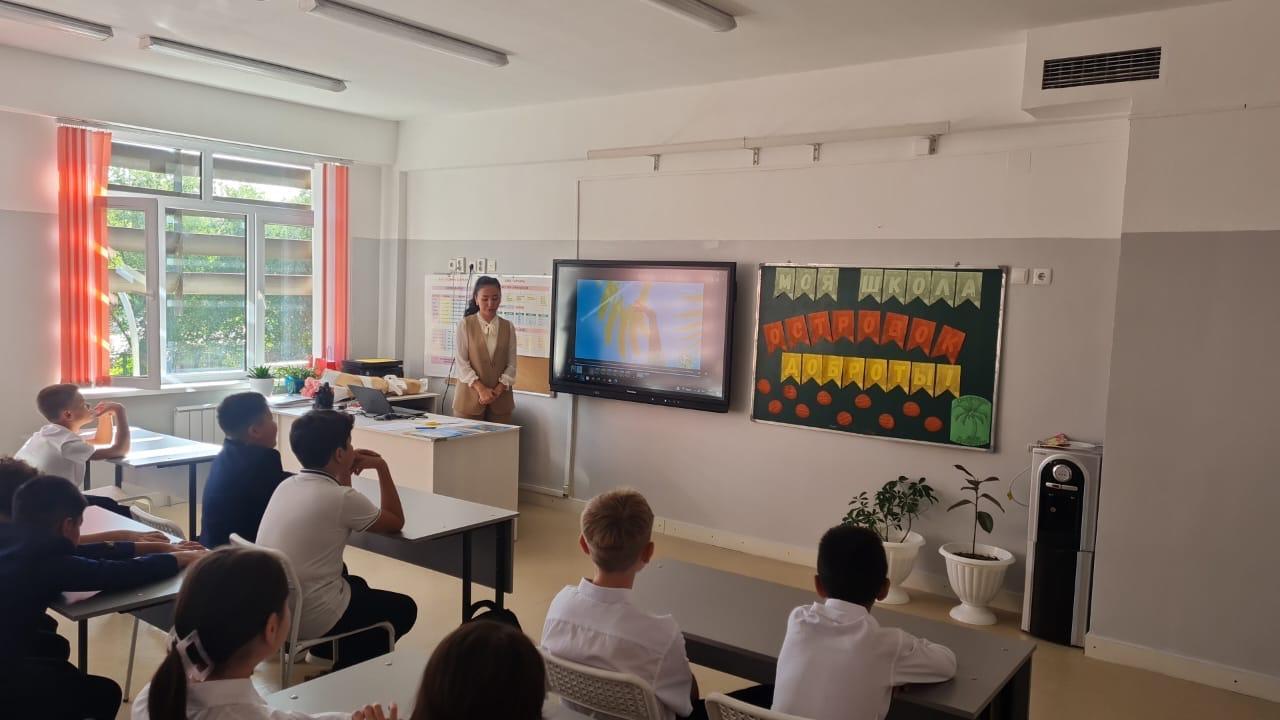 2 қыркүйекте № 61 ЖББМ КММ-де "Менің Отаным Қазақстан"Бірыңғай сынып сағаты өтті. Менің Отаным-Қазақстан", "Негізгі Заң - тәуелсіздіктің тірегі", Қазақстан Республикасы Конституциясының 30 жылдығына арналған және "Отсыз әлем-отсыз әлем".