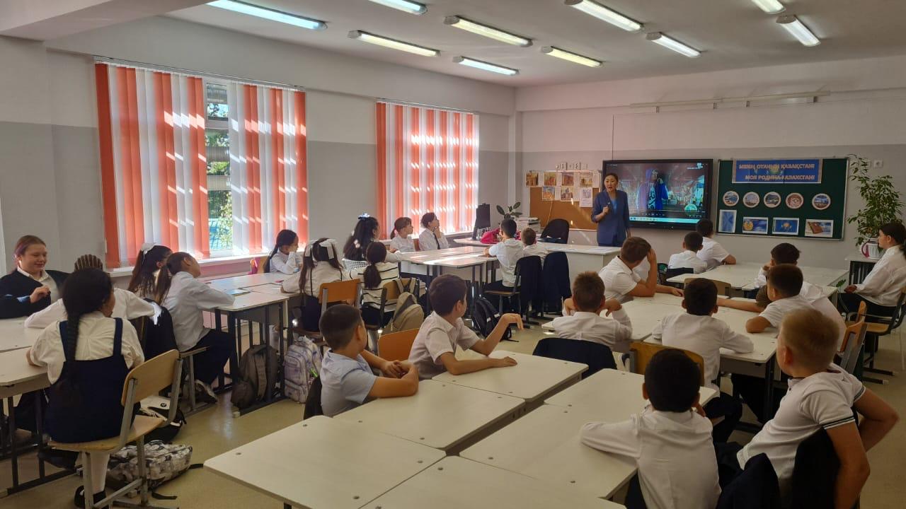 2 сентября в КГУ ОШ № 61 прошел Единый классный час "Моя Родина Казахстан". Менің Отаным - Қазақстан», "Основной Закон - опора независимости", посвящённый 30-летию Конституции Республики Казахстан и "Отсыз әлем - Мир без огня".