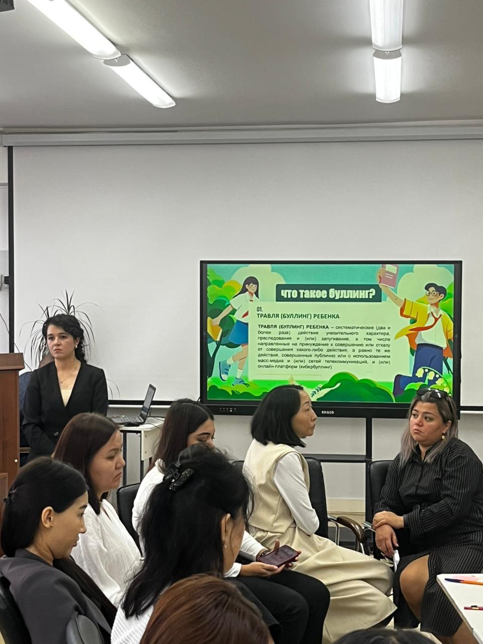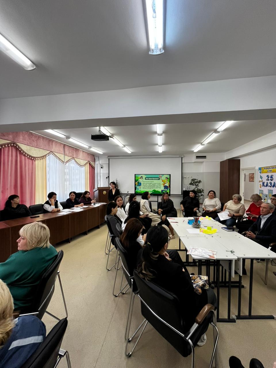 1. Тренинг: қазақ тілі мен әдебиеті мұғалімі А. С. Турусбекова, Ж. А. Абдраманова "оқу ортасын дамыту оқытудың нәтижелілік аспектісі ретінде".2. "Ерекше білім беру қажеттіліктері бар балалардың оқу процесін ұйымдастыруға әдістемелік көмек". Садыбеков О.С. УР бойынша орынбасары.3. "Білім алушылар арасында қылмыс пен құқық бұзушылықтың алдын алу". ТЖ жөніндегі орынбасары Оразаева А. С.4. Үлгерімі төмен оқушылармен жұмысты ұйымдастыру. Ур бойынша орынбасары Таурбекова г. С.