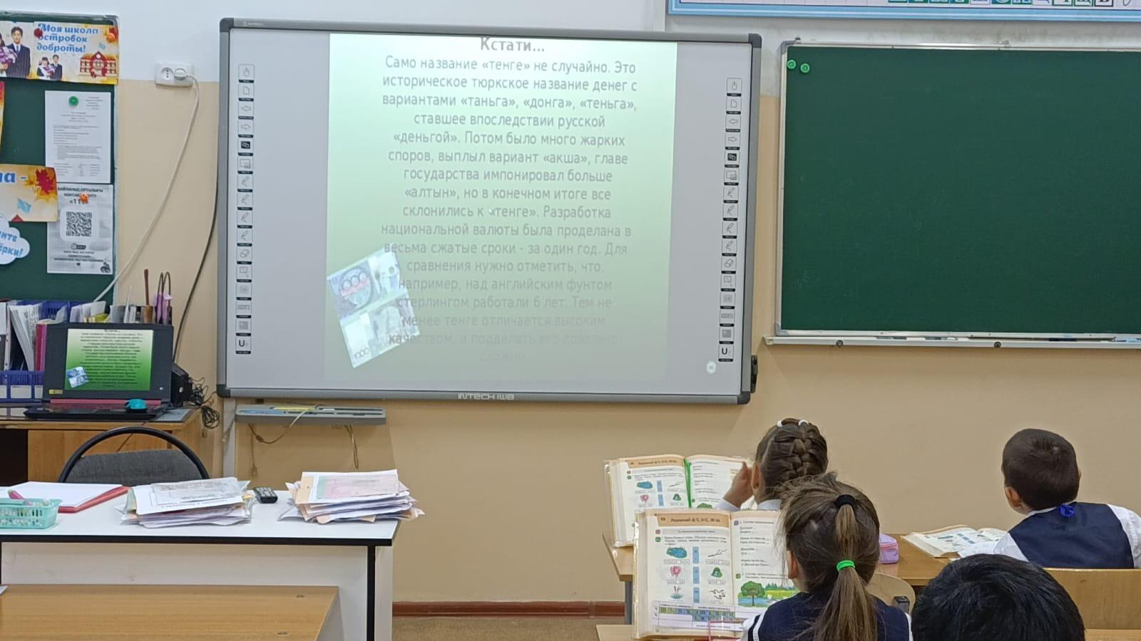 * 5-8 сыныптарда "теңге-біздің мақтанышымыз", "Экономика және адалдық: адал азамат жолы"атты кездесу – әңгімелер ұйымдастырылды. Балалар мемлекеттің дамуы үшін ұлттық валютаның маңыздылығын және ақшаға ұқыпты қараудың маңыздылығын талқылады.