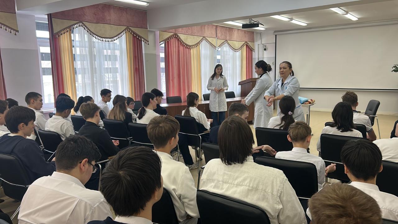19 ноября студенты медицинского колледжа «Аяжан» провели мастер-класс для учащихся 9–10 классов по оказанию первой медицинской помощи. Во время занятия школьники познакомились с основами оценки состояния пострадавшего, правилами вызова экстренных служб, а также отработали практические навыки: выполнение сердечно-лёгочной реанимации, обработку ран и остановку кровотечения.
