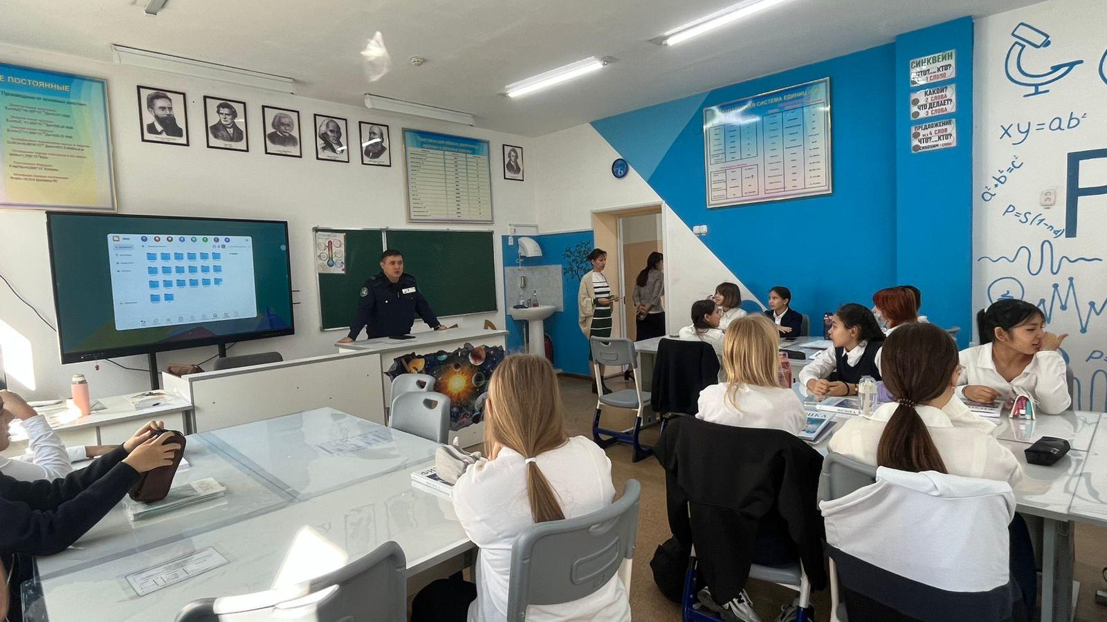 Сегодня лейтенант полиции УИП ОЮП Турксибского района Рысалдиев Р.А., провел беседу на тему «Уголовная ответственность несовершеннолетних». Среди учащихся 11 классов.