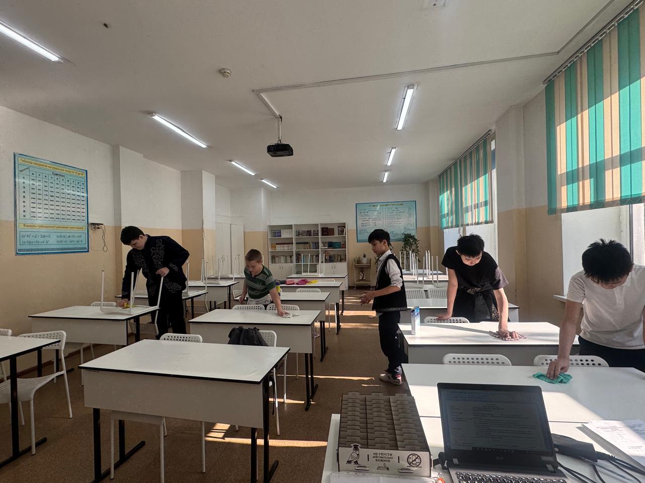 "Таза бейсенбі" апталық акциясы— бұл мектеп аумағында тазалық пен тәртіпті сақтауға бағытталған бастама, сонымен қатар ол мектептегі тазалық пен тәртіпті сақтауға ғана емес, сонымен қатар оқушылардың экологиялық проблемалардың маңыздылығы мен олардың біздің өмірімізге әсері туралы түсініктерін дамытуға көмектеседі. Мұндай акцияларға белсенді қатысу жас ұрпақты қоршаған ортаға және тұрақты дамуға жауапкершілікпен қарауға шабыттандырады. Тазалау процесінде оқушылар мұғалімдермен бірге сынып бөлмелерін ретке келтірді, шкафтарды ретке келтірді, макулатура шығарды, оқу бөлмелерін таза ұстаудың маңыздылығын және оның мектептегі жалпы атмосфераға әсерін талқылады. Мұндай іс-шаралар жақсы әдеттер мен құндылықтарды қалыптастыру үшін маңызды жауапкершілік пен өз кеңістігіңізге қамқорлық сезімін дамытуға көмектеседі. Барлық сынып жетекшілеріне, оқушыларға ортақ үйімізді жақсартуға тырысқаныңызға рахмет, біздің мектепте, ауданда, қалада, елде, планетада тазалық тек әрқайсымызға байланысты екенін ұмытпаңыз!