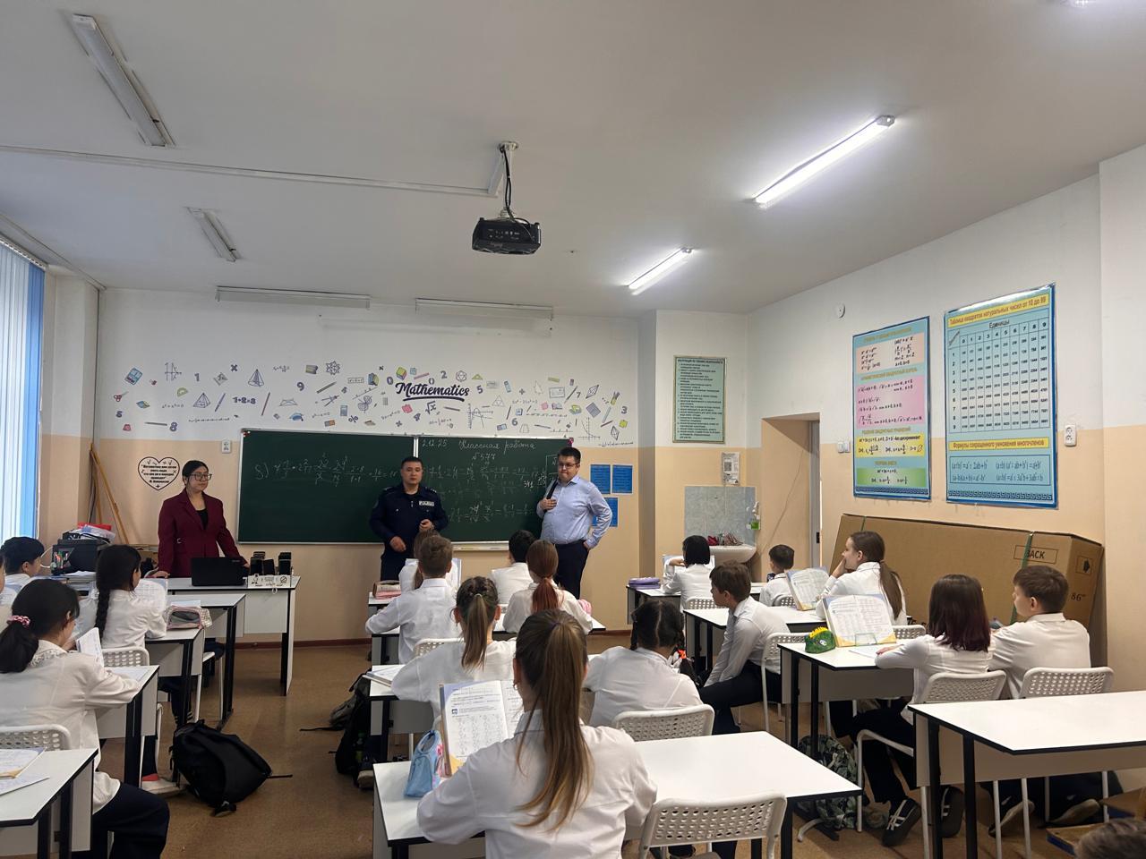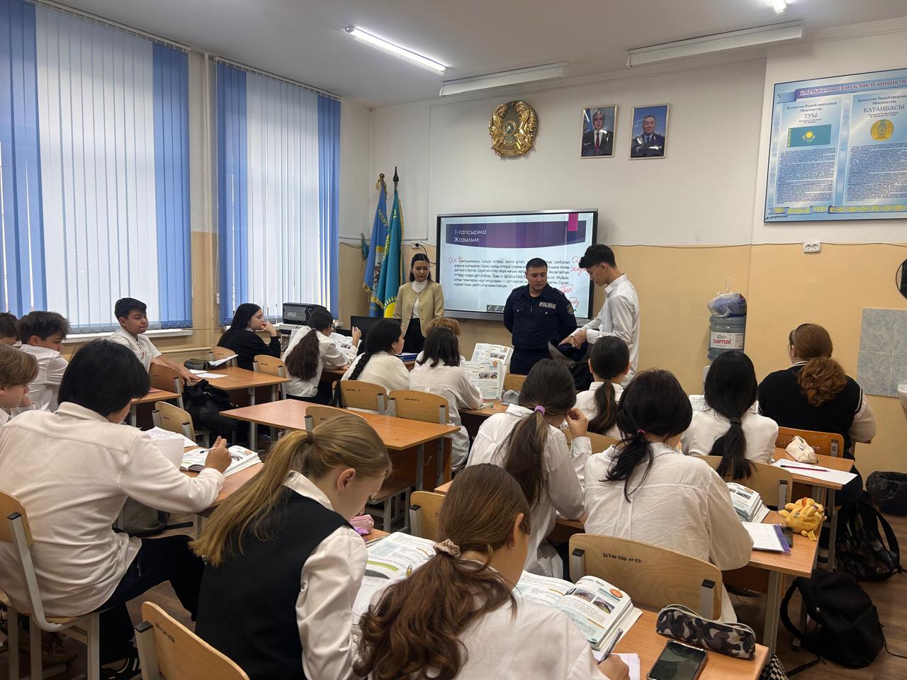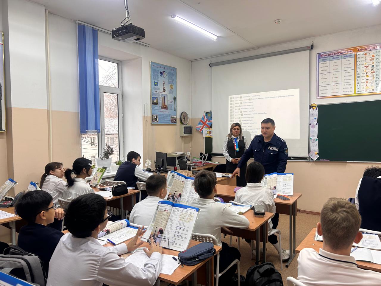 Сегодня старший лейтенант полиции отдела ювенальной полиции Турксибского района Рысалдиев Руслан Алексеевич провел профилактическую беседу на тему «Безопасн