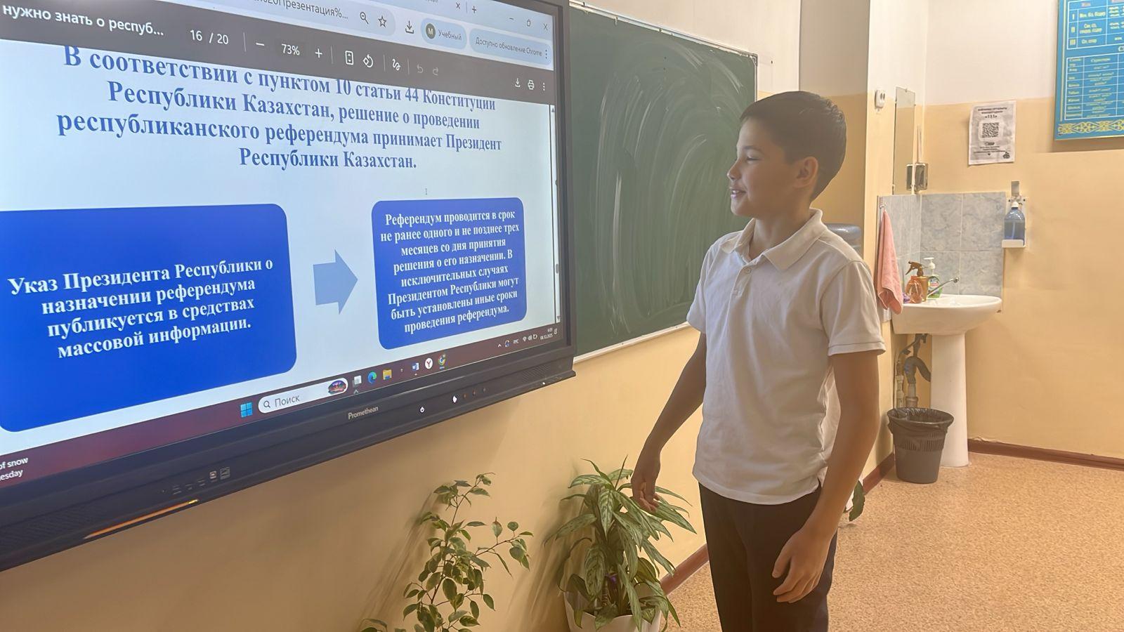 Классный час на тему «Что нужно знать о республиканском референдуме?» Дата проведения: 08 декабря 2025 года Цели: 1. Формирование демократических ценностей и повышение уровня правосознания школьников; 2. Информирование школьников о сущности и значении республиканского референдума; 3. Воспитание казахстанского патриотизма среди школьников.