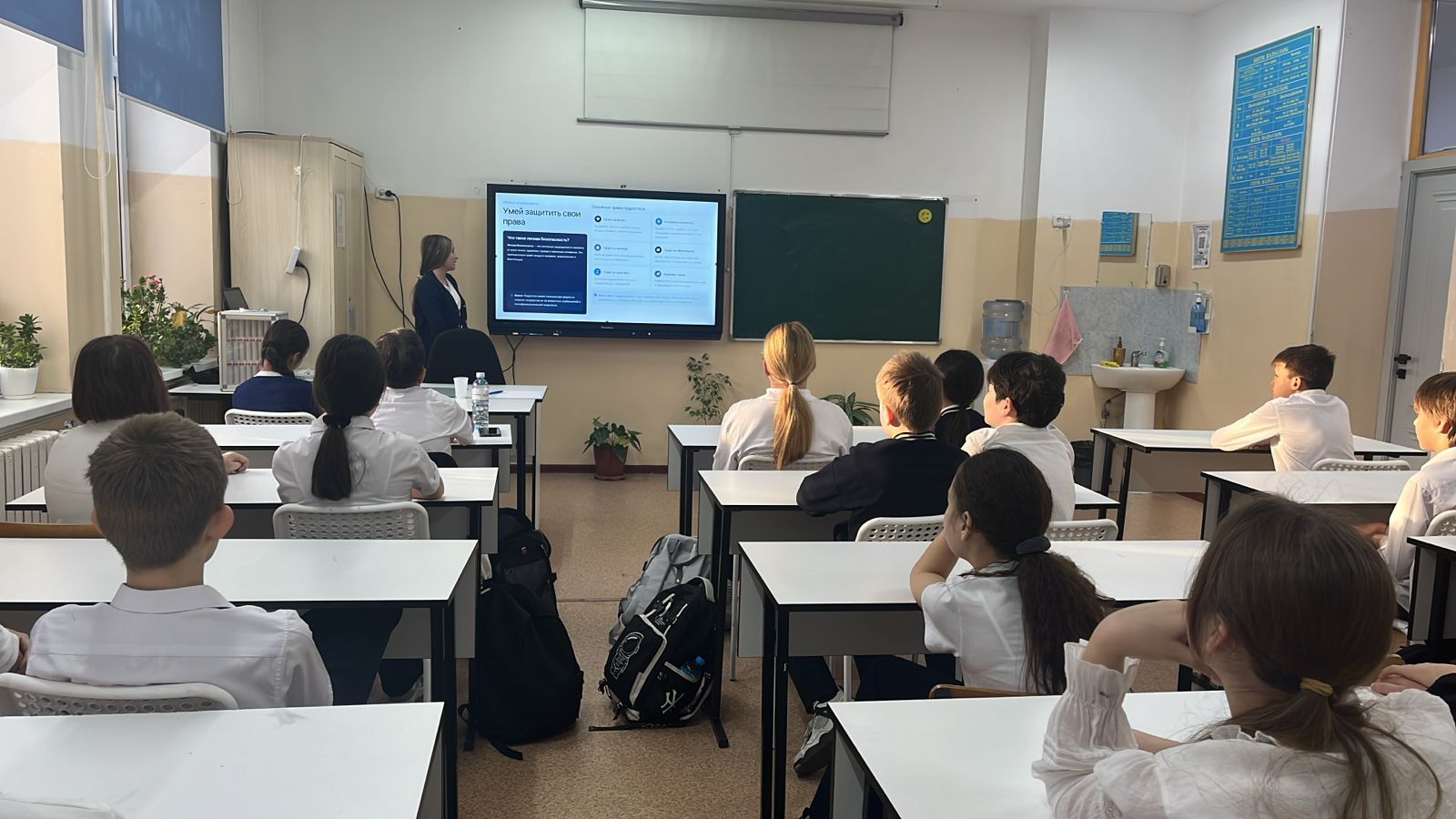 Бүгін "жеке қауіпсіздік" 1-сынып бағдарламасы бойынша сынып сағатын өткіздік:"біріктіруге болмайтын өнімдердің комбинациясы"2-сынып: "супермаркеттегі өнімдерді таңдау ережелері", 3-сынып:" күдікті заттарды анықтаудағы бес қадам", 4-сынып:" азық-түлік эксперименттерінің қауіптілігі", 5-8-сыныптар"өз құқықтарыңды қорғай біл". 9-11 "Өз құқығыңды қорғай біл"сыныптары.