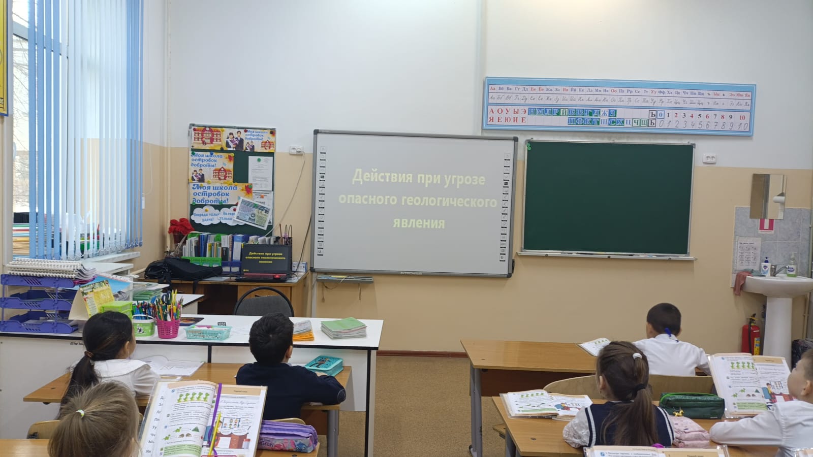 Сегодня классный час по проекту «КӨМЕК» (10 минут) разобрали темы: 1 класс — Оползни. Сели. Обвалы.