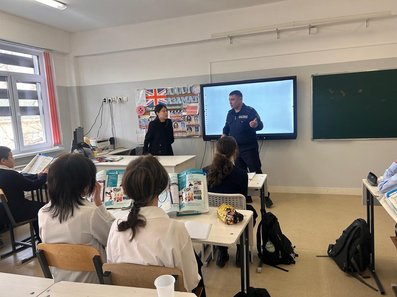 Оқушыларға құқық бұзушылықтар үшін тәртіптік және әкімшілік жауапкершілік, сондай-ақ мектеп ережелерін сақтаудың маңыздылығы туралы ескертілді.