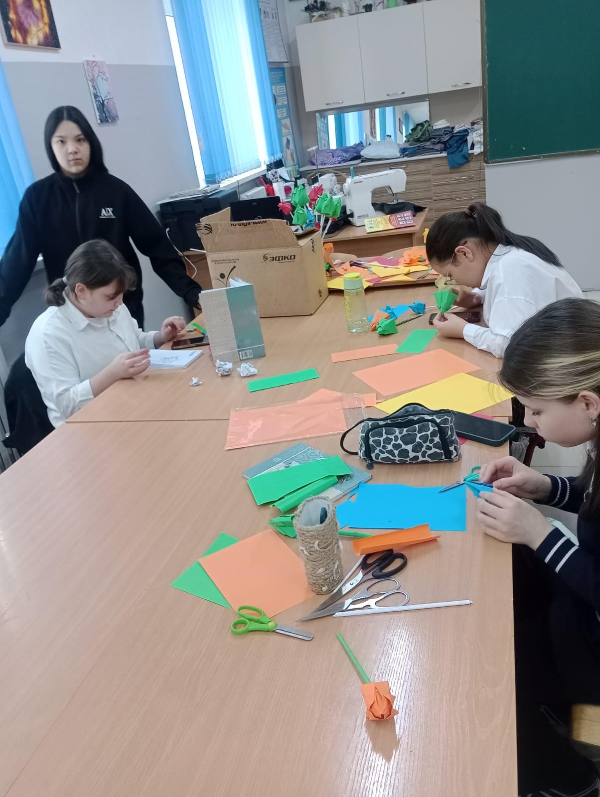 02.03. – 06.03.2026г., в школе были проведены творческие мастер-классы по изготовлению праздничных открыток и цветов из бумаги. Мероприятие организовала и провела учитель технологии Дандыбаева Б.Ж. Целью мастер-классов было развитие творческих способностей учащихся, формирование эстетического вкуса, а также воспитание уважительного и теплого отношения к мамам, бабушкам и учителям.