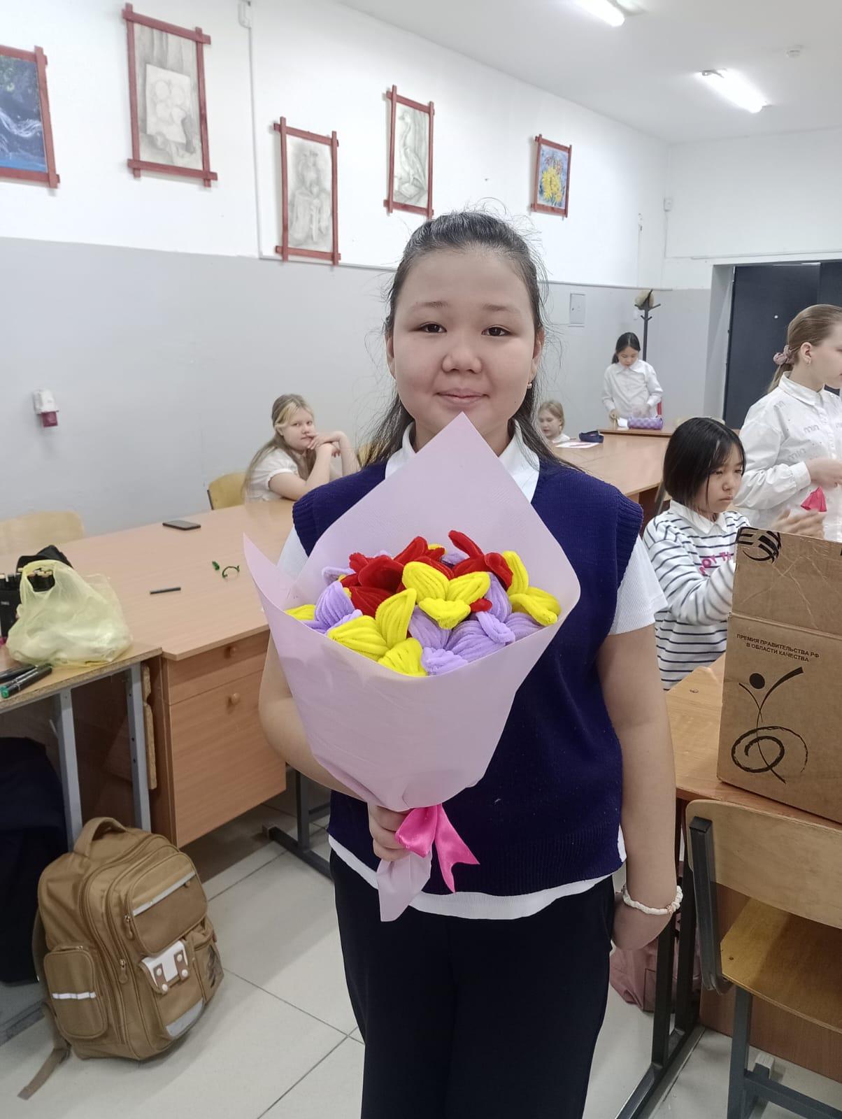 Во время занятий учащиеся познакомились с различными техниками работы с бумагой, научились аккуратно вырезать, складывать и оформлять декоративные элементы. Ребята с большим интересом изготавливали яркие открытки и бумажные цветы, проявляя фантазию и творческий подход. Каждый старался сделать свою работу красивой и особенной, чтобы подарить ее близким людям. Работа проходила в дружеской и творческой атмосфере. Учитель помогала учащимся, подсказывала идеи оформления и поддерживала их инициативу. В результате мастер-классов были созданы оригинальные подарки, которые дети с радостью подготовили к празднику.