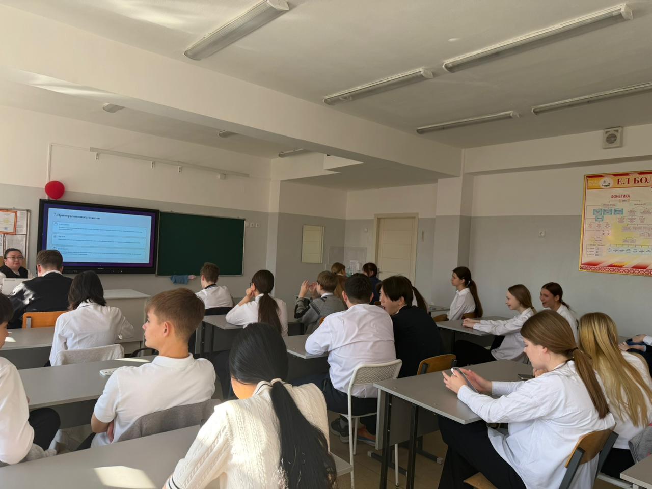 8-11 сынып оқушылары үшін "таза сана — таза әдет"тақырыбында сынып сағаттары өткізілді. Әңгімелесу барысында жоғары сынып оқушылары саналы өмір салтының, жаман әдеттерден бас тартудың, өзін-өзі бақылаудың және олардың физикалық және психологиялық денсаулығы үшін жауапкершіліктің маңыздылығы туралы талқылады. Пайдалы әдеттер мен өмірлік құндылықтарды қалыптастыру мәселелері талқыланды.