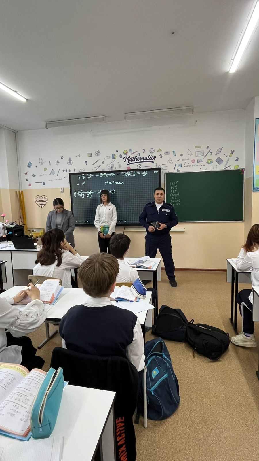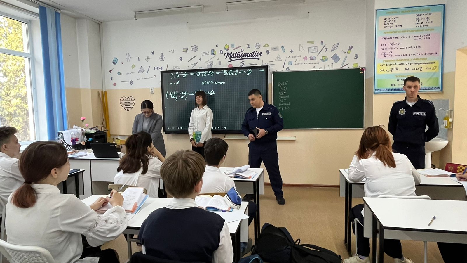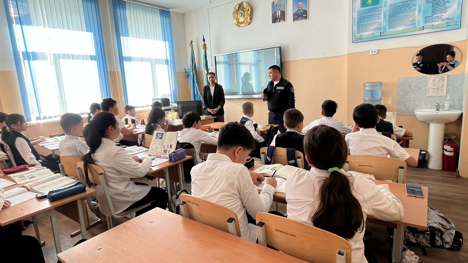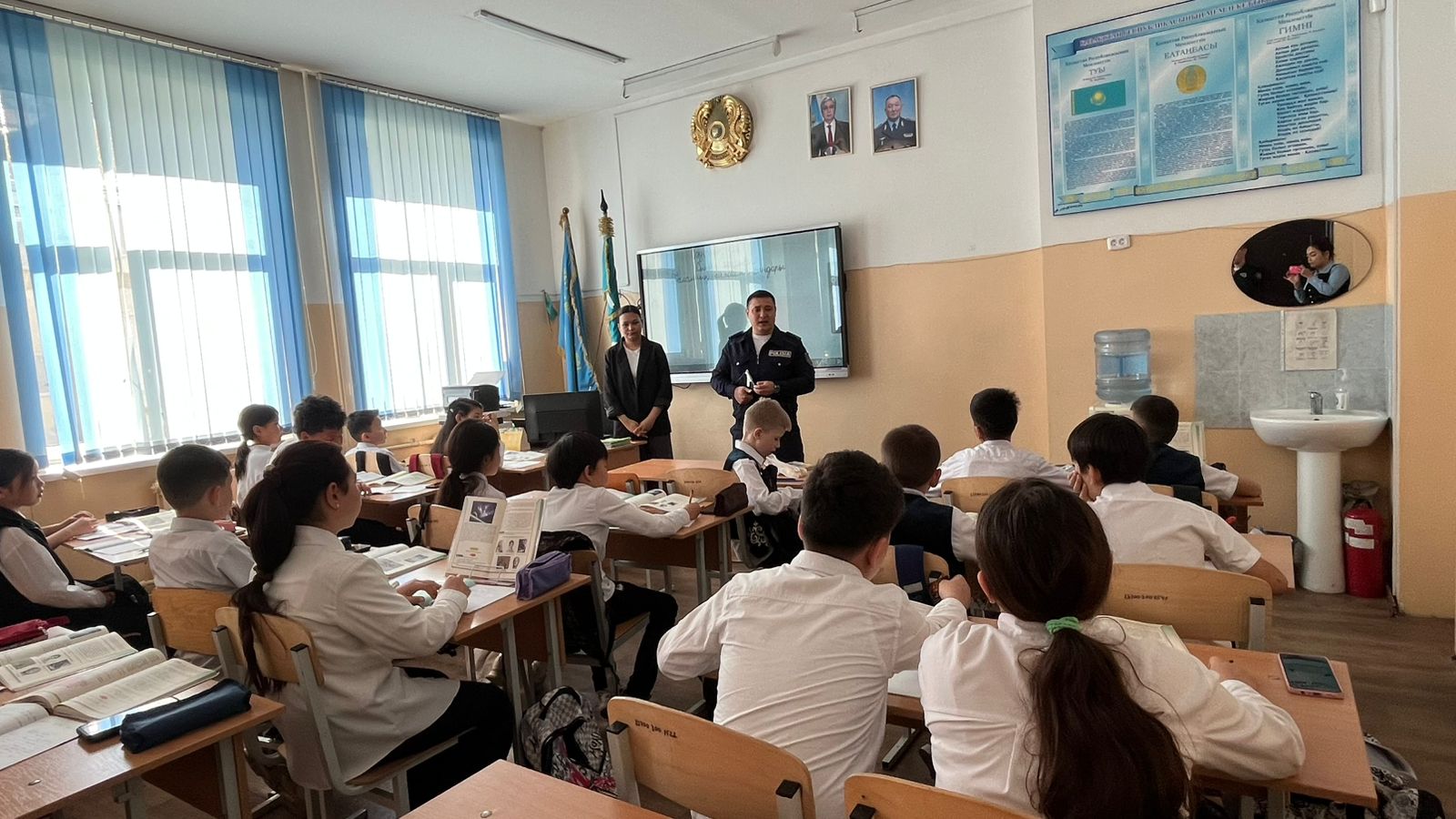 оқтату бұзушылықтар!». Әңгімелесу барысында Қазақстан Республикасының қолданыстағы заңнамасының нормалары, атап айтқанда Әкімшілік құқық бұзушылық туралы кодекстің 615, 620 және 127-баптары түсіндірілді. Оқушыларға құқық бұзушылықтар жасаудың құқықтық салдары және қоғамдық тәртіпті сақтау қажеттілігі туралы ақпарат берілді.