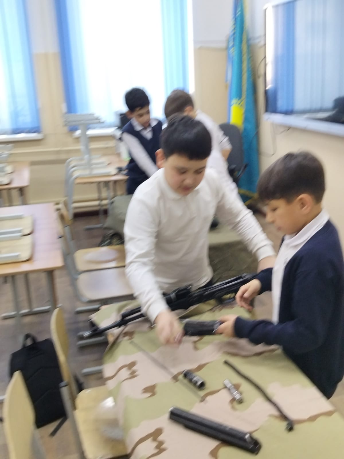 Руководитель военно-патритического клуба Қаhарман Ұрпақ - Усенов О.А., провел обучение по сборке и разборке автомата. Ребята с большим увлечением занимаются любимым делом.