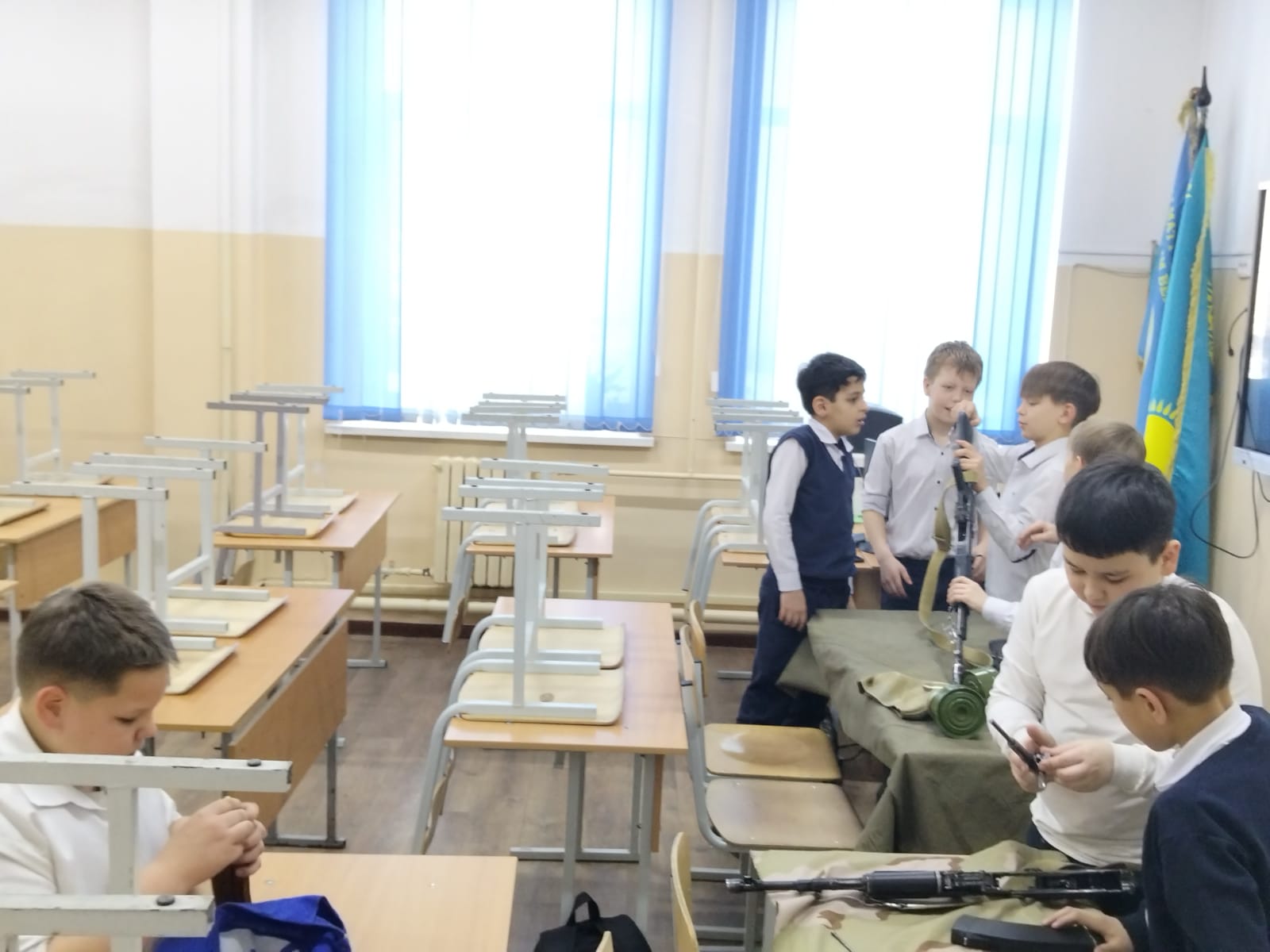 Қаһарман Ұрпақ әскери-патриоттық клубының жетекшісі-Үсенов О.А., Автоматты құрастыру және бөлшектеу бойынша оқыту жүргізді. Балалар өздерінің сүйікті ісімен үлкен қызығушылықпен айналысады.