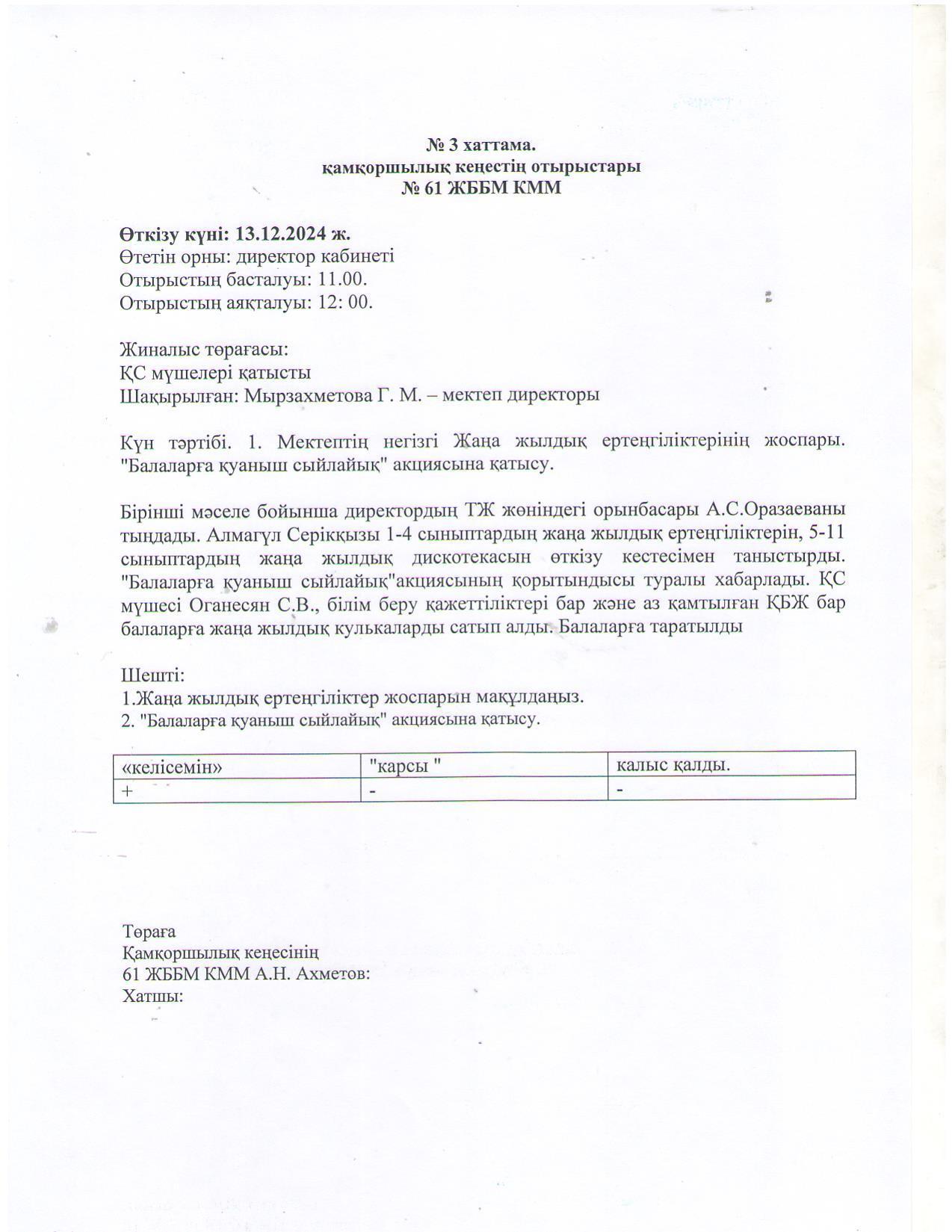 № 4 хаттама, №4 протокол от 26.01.2024г.