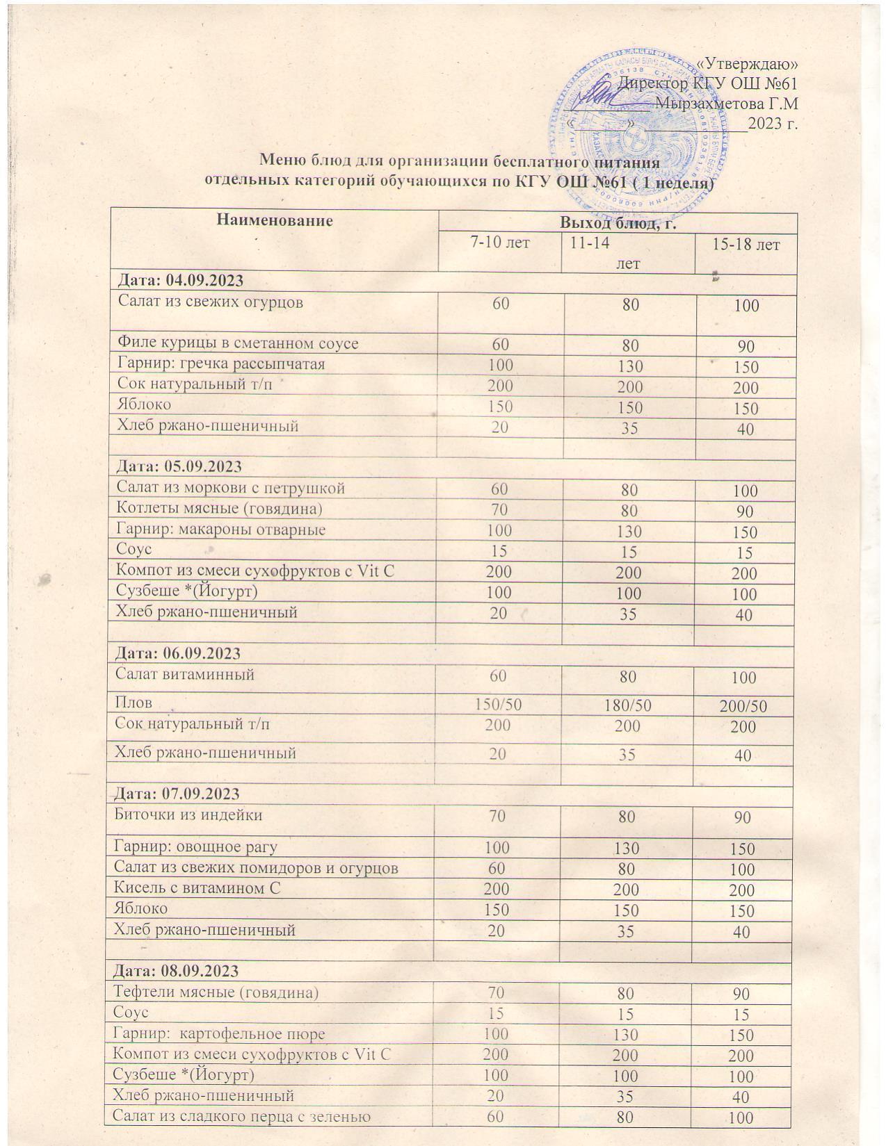 01 сентябрь 2023 0 1 2 3 4 5 Мәзір 04.09.-08.09.2023 ж. Меню от 04.09.-08.09.2023г. Мәзір 04.09.-08.09.2023 ж.Меню от 04.09.-08.09.2023г. Осы беттің QR-коды:QR-код этой страницы: